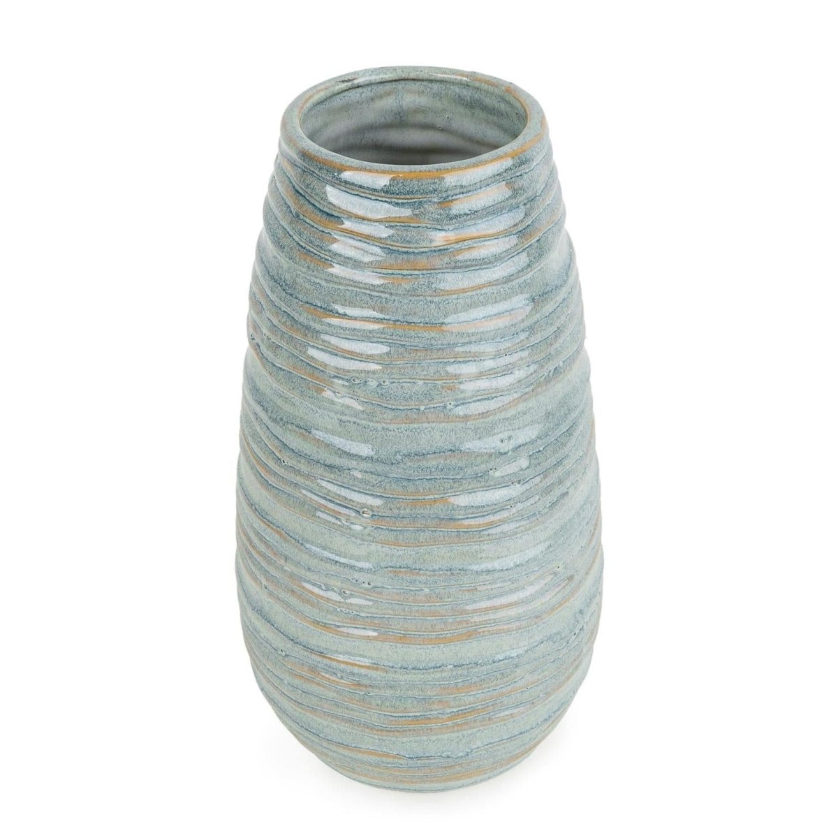 Bring rustic charm to your home with this handcrafted reactive blue glazed vase, featuring unique ridged textures and one-of-a-kind colour variations