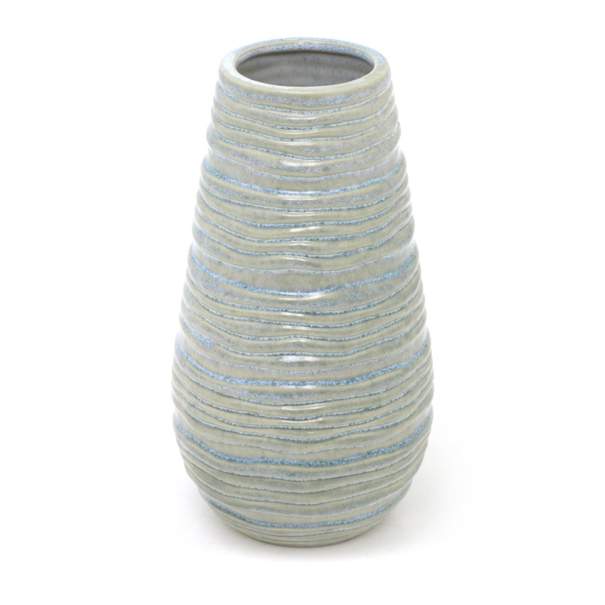 Reactive Blue Glazed Ridged Vase | Handcrafted Ceramic Vase for Flowers