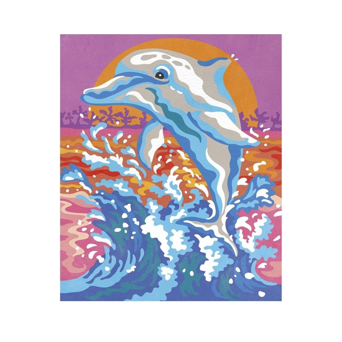 PAINT BY NUMBERS SET: Introduce your child to the world of painting with the Janod Dolphins Paint by Numbers Set. This art kit allows children to create two beautiful watercolour paintings of dolphin and sea themed scenes by following the numbered sections on the cardboard boards.