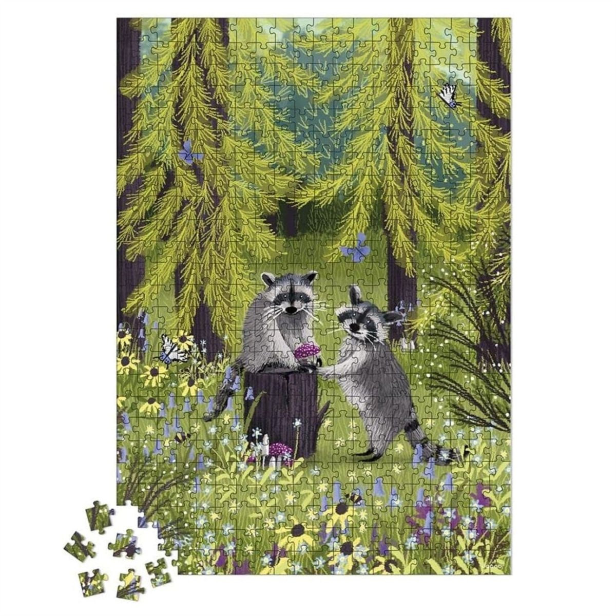 NATURE-THEMED PUZZLE: Dive into the wilderness with this captivating 500-piece puzzle. Showcasing two charming raccoons in a vibrant, flower-filled forest, this puzzle boasts intricate details and lively colours, making it ideal for nature and wildlife enthusiasts.