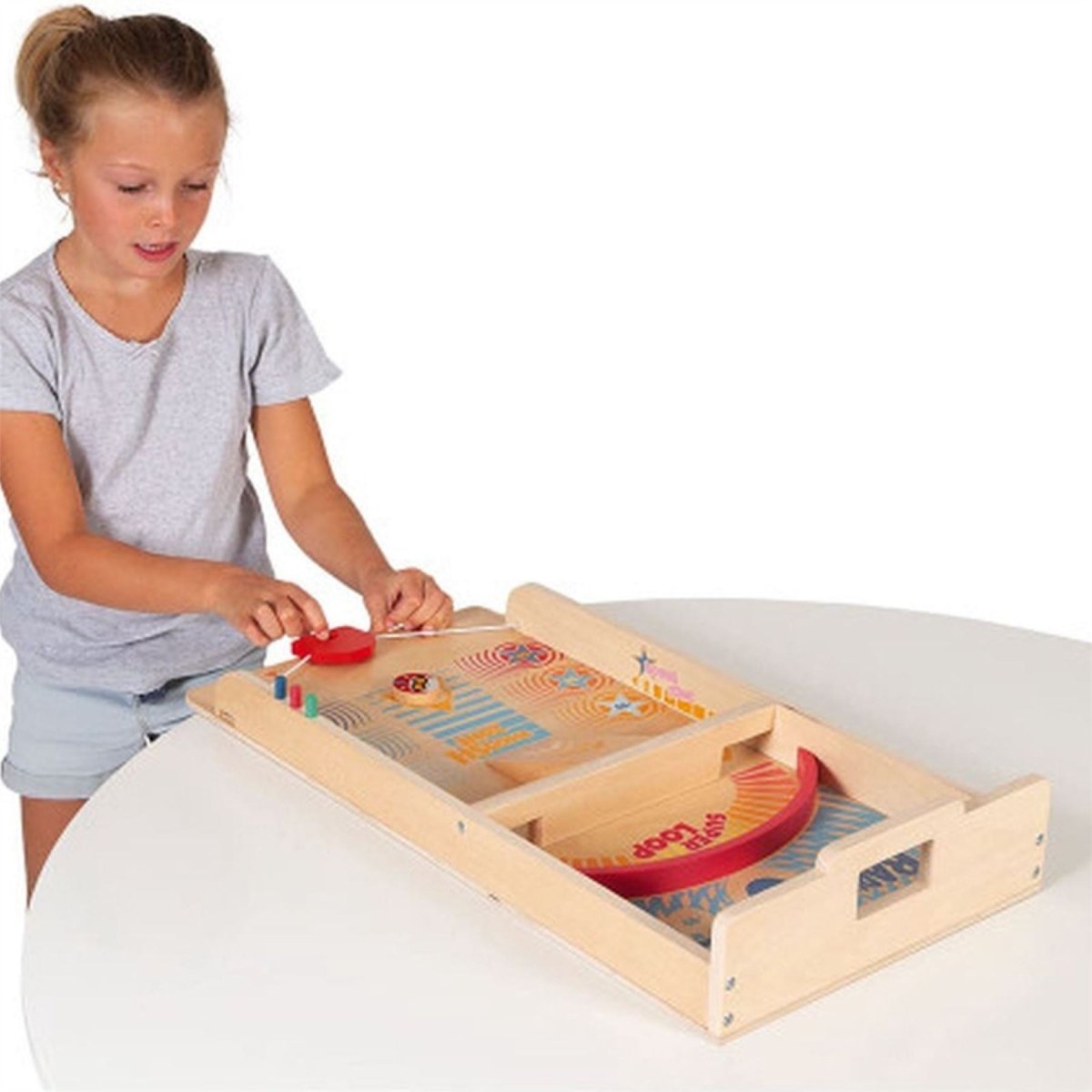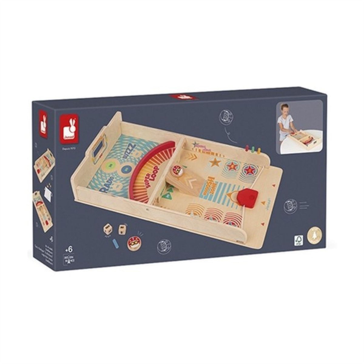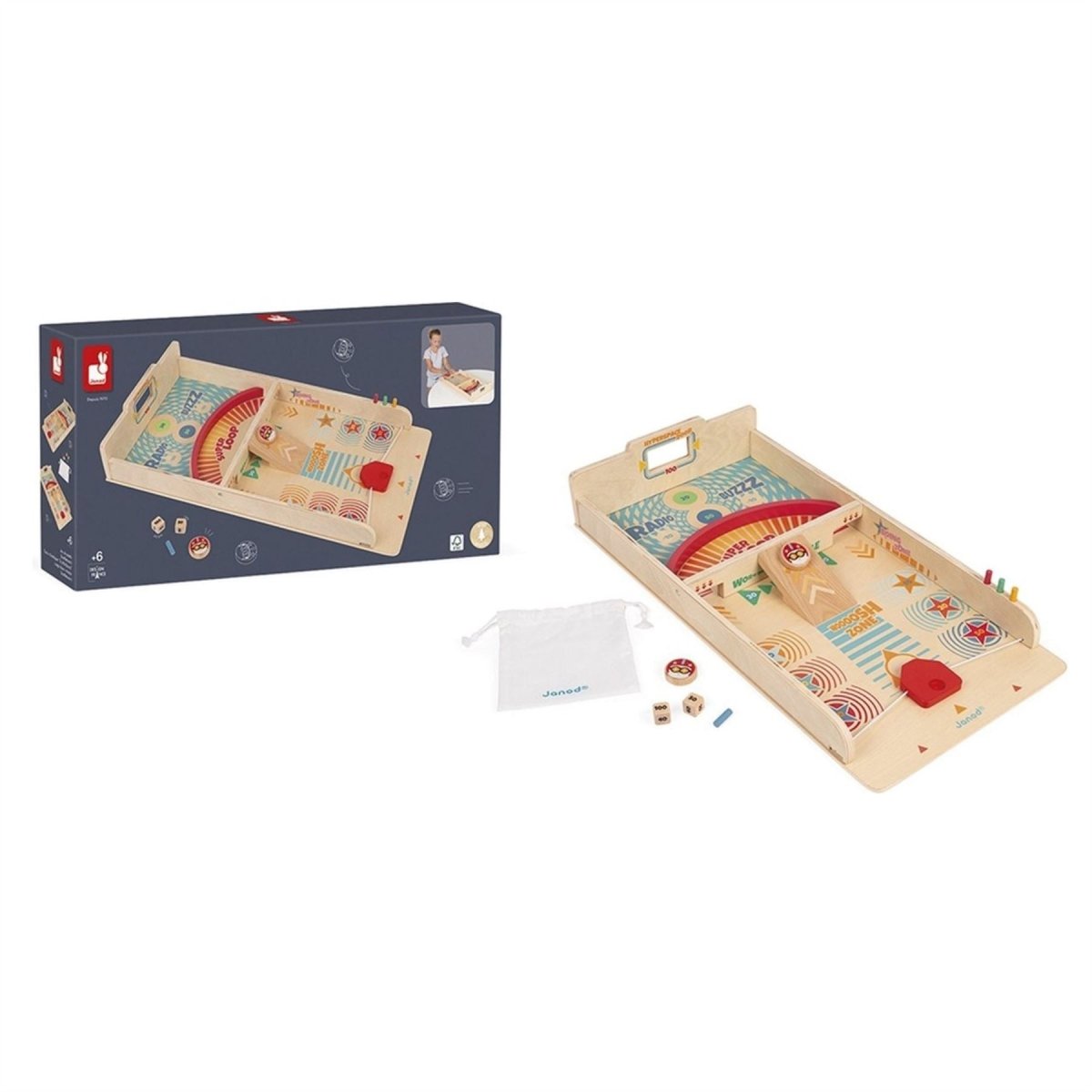 MODERN TWIST ON A CLASSIC GAME: Janod’s Shuffleboard Game reimagines the traditional paddle game with vibrant colours and bold illustrations, enhancing fun and engagement for children and adults alike.
