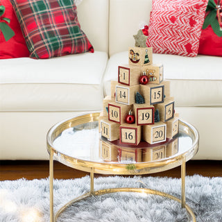Christmas Tree Advent Calendar | Wooden Toy Block Tree with Glittery Star - 30cm