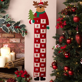 Reindeer Christmas Advent Calendar | Reusable Felt Fabric with 24 Pockets - 90cm