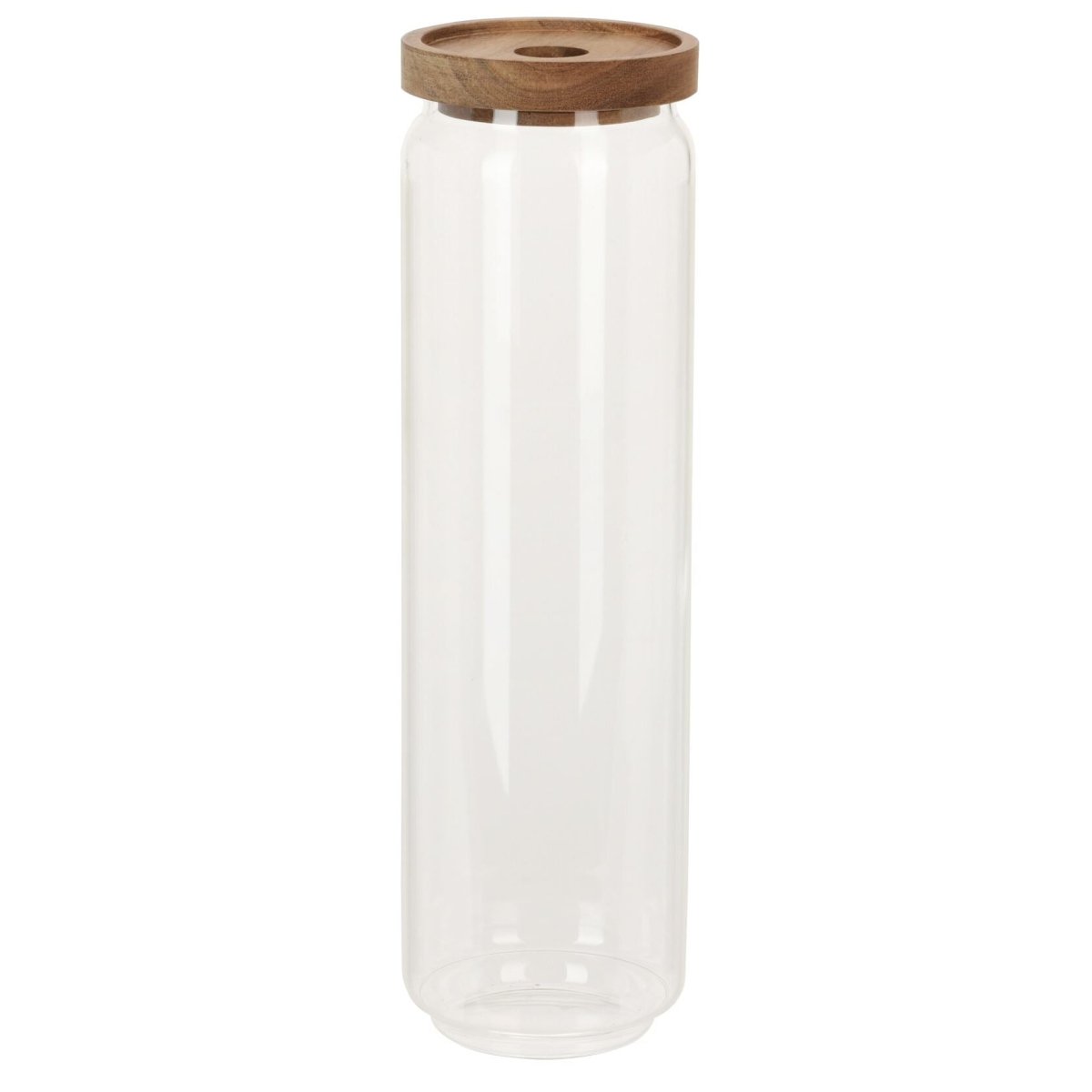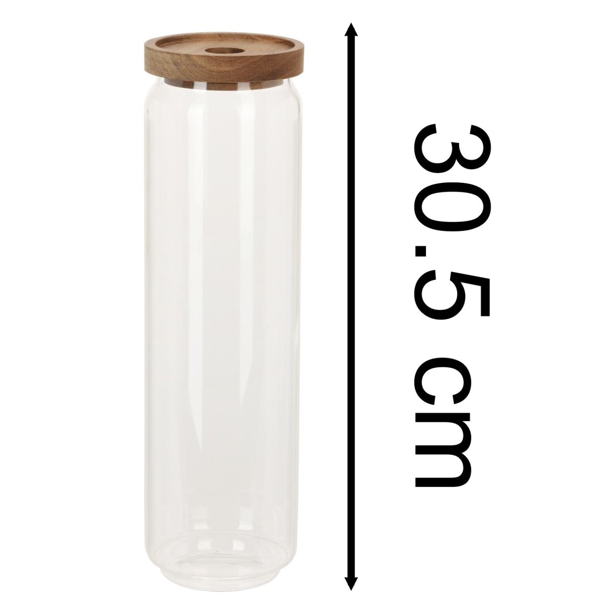 This glass food storage container merges practicality with a touch of elegance, featuring a sturdy borosilicate glass body and an acacia wood lid with a silicone seal. Perfect for storing a variety of kitchen staples, this jar is both functional and attra