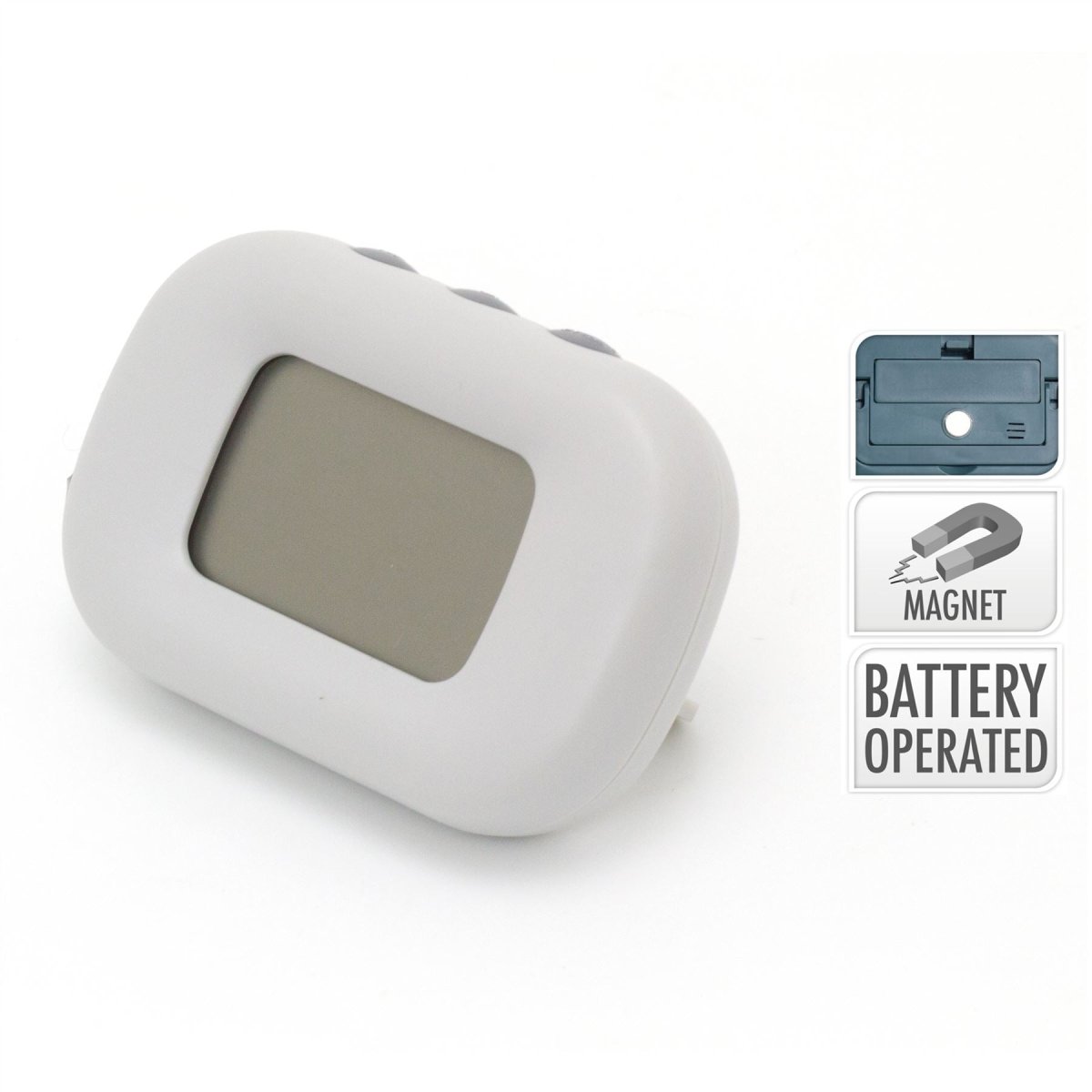 DIGITAL EGG TIMER: This handy timer features an alarm with the ability to count up or down, magnetic clip and a hinge to stand unassisted