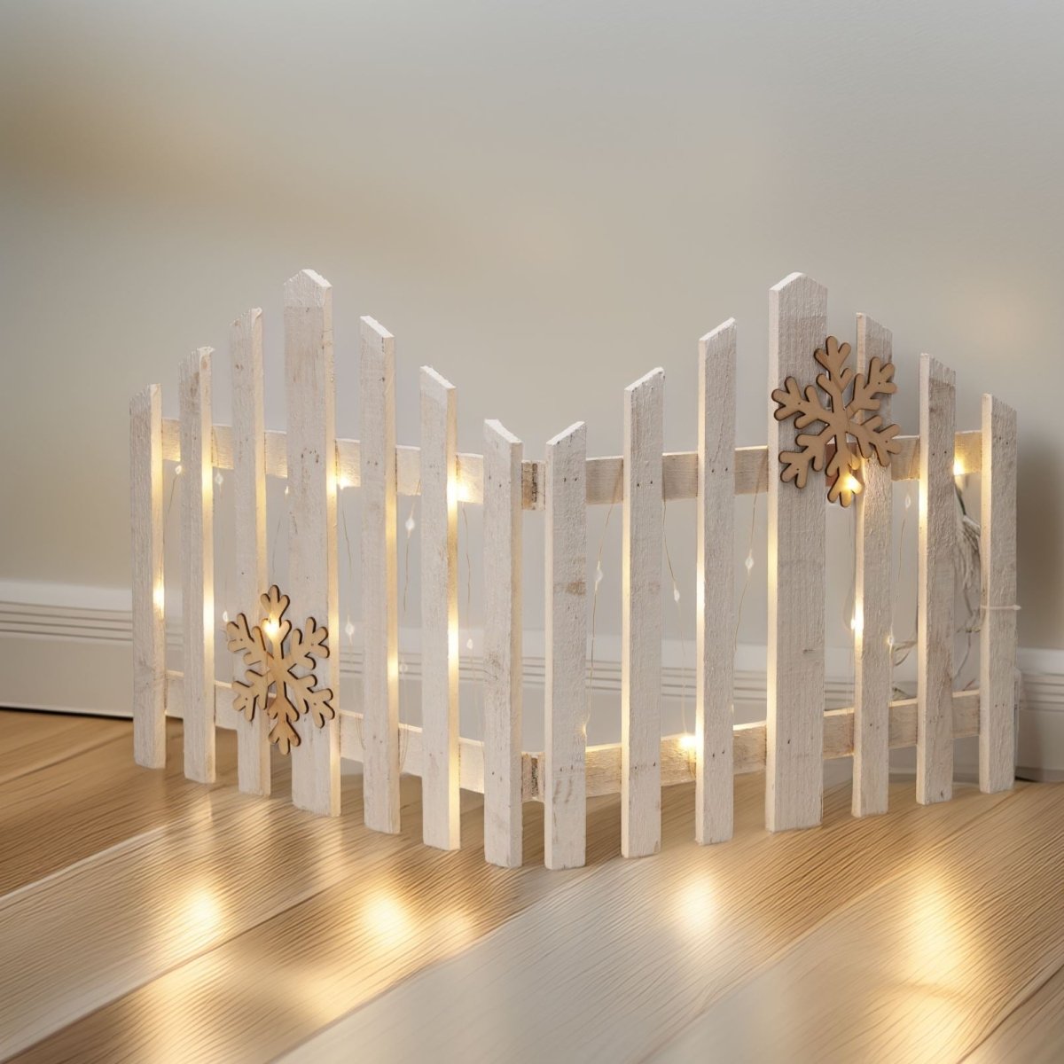 CHRISTMAS TREE FENCE | Create a picture-perfect festive scene with this charming white wooden picket fence, featuring softly glowing LED lights for a cosy Christmas feel
