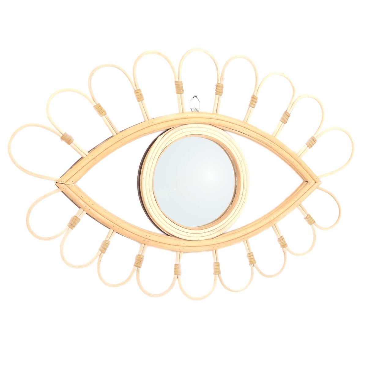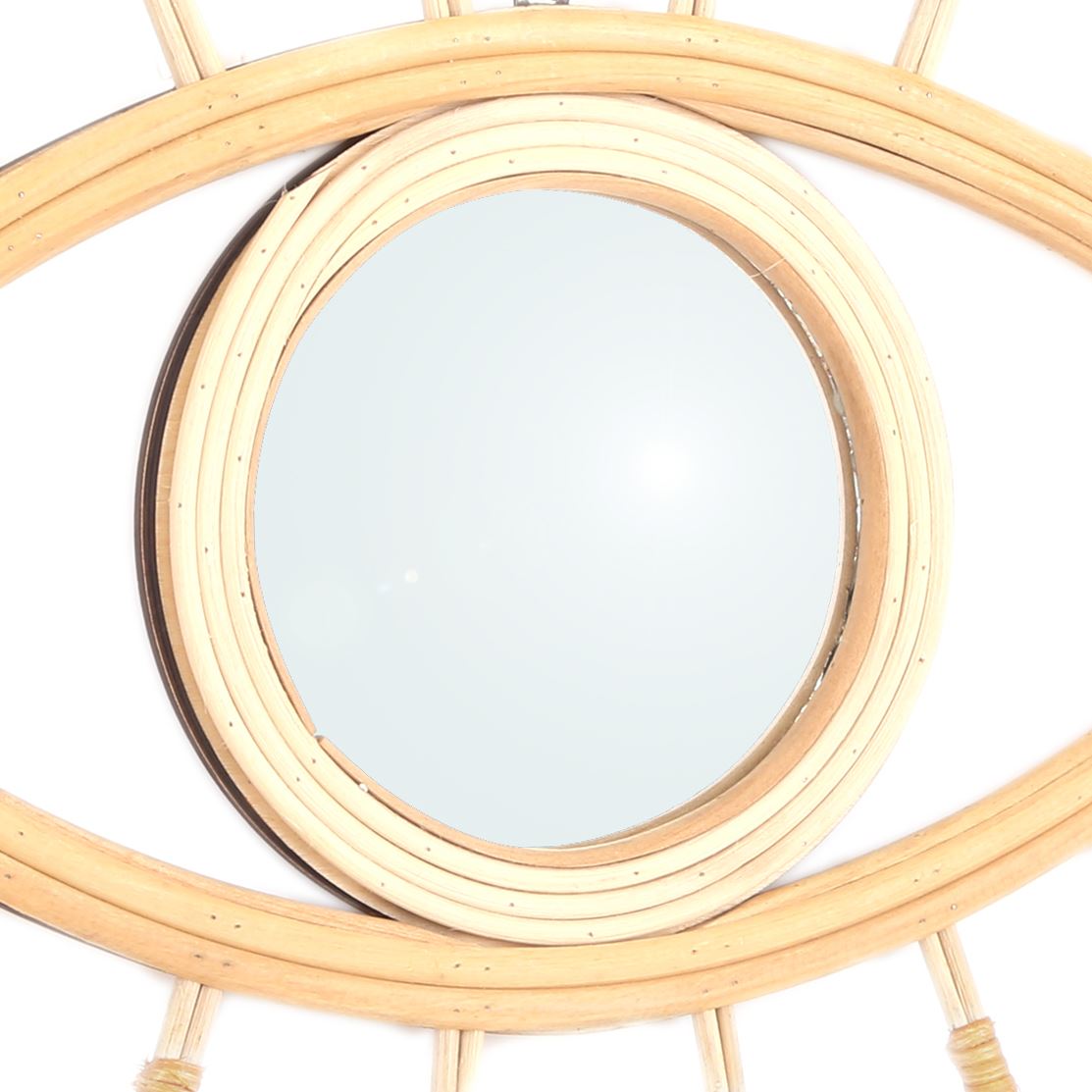 42cm Decorative Rattan Eye Shaped Wall Mirror | Wall Hanging Wicker And Glass Boho Mirror