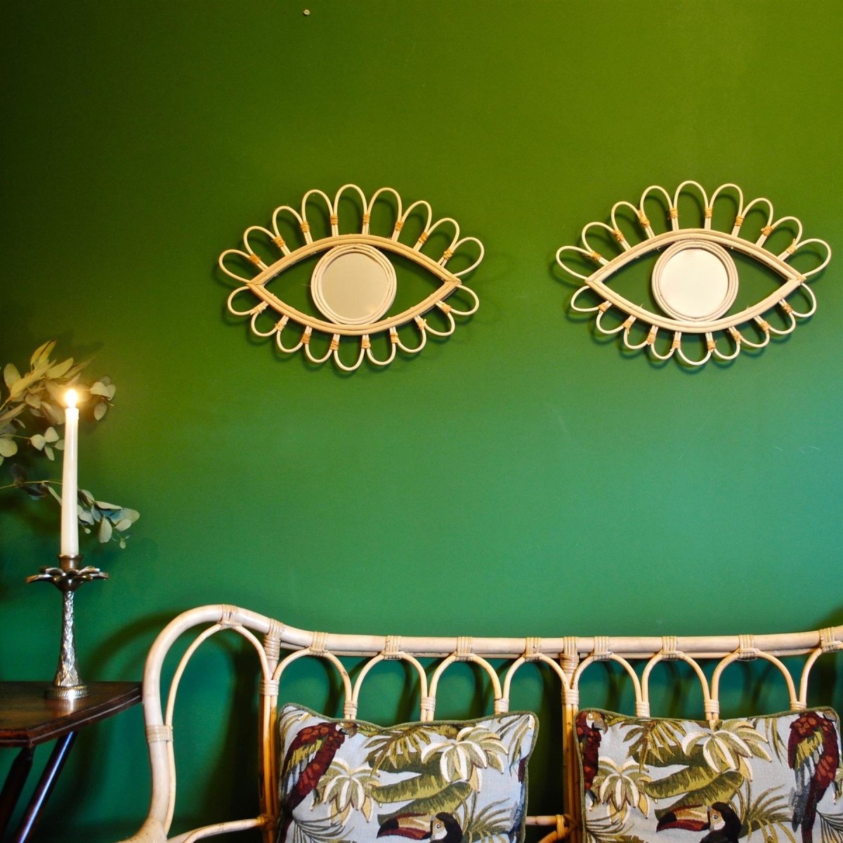EYE MIRROR: A striking mirror made from bamboo rattan. It is lightweight and has an eyelet at the back for hanging. Would look super in a hallway or lounge
