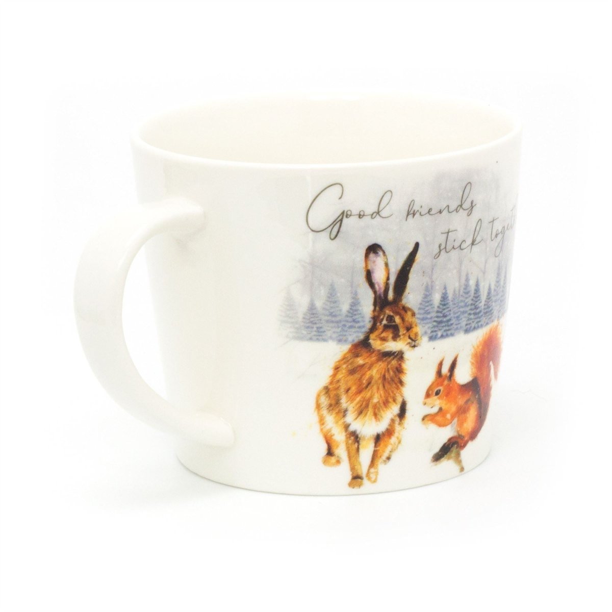 COFFEE MUG: Bring some joy to your friends morning coffee or tea with this delightful ceramic mug, features a beautifully illustrated winter woodland scene. Reads 'Good Friends Stick Together'