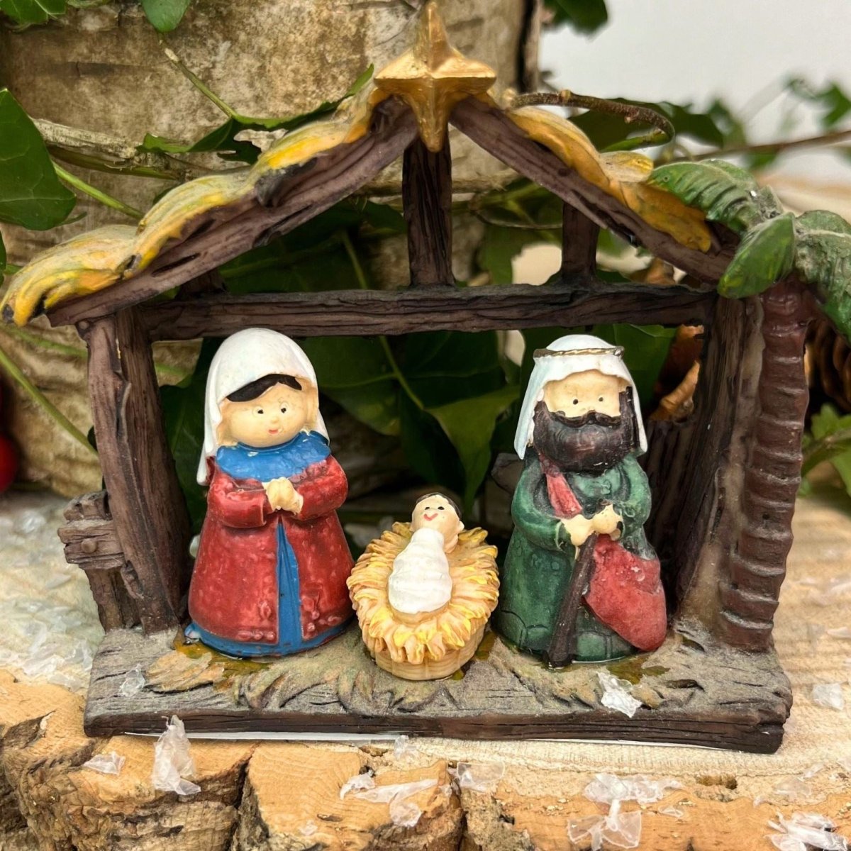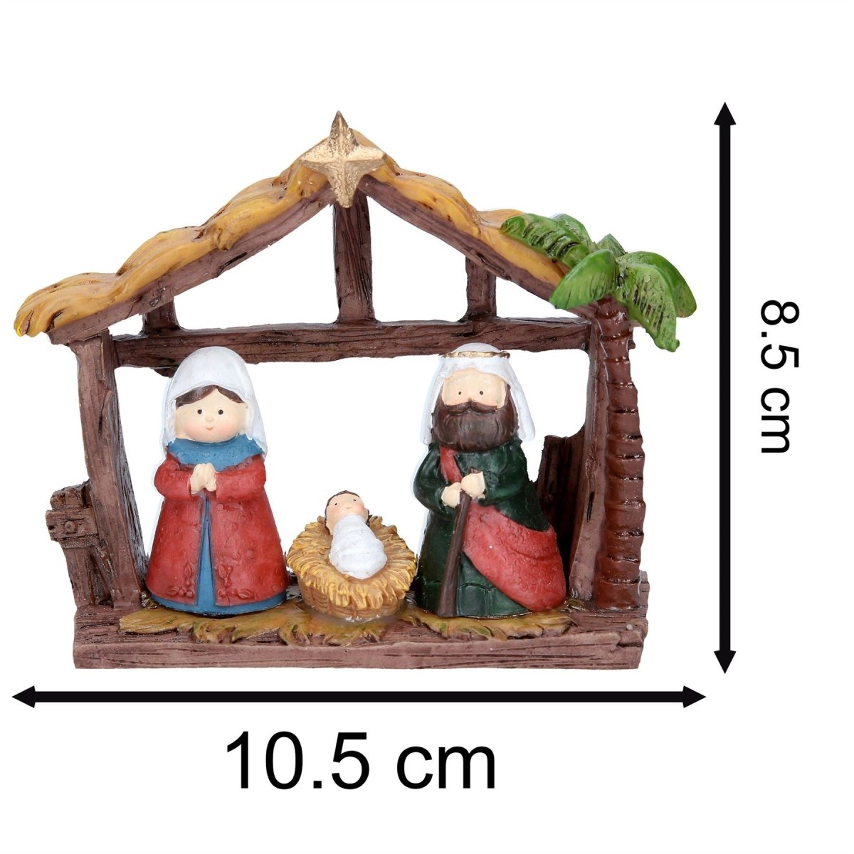 NATIVITY SET | Measuring 10cm wide, 8.5cm high, and 3.5cm deep, this durable polyresin nativity set is perfectly sized for a shelf, mantelpiece, or windowsill