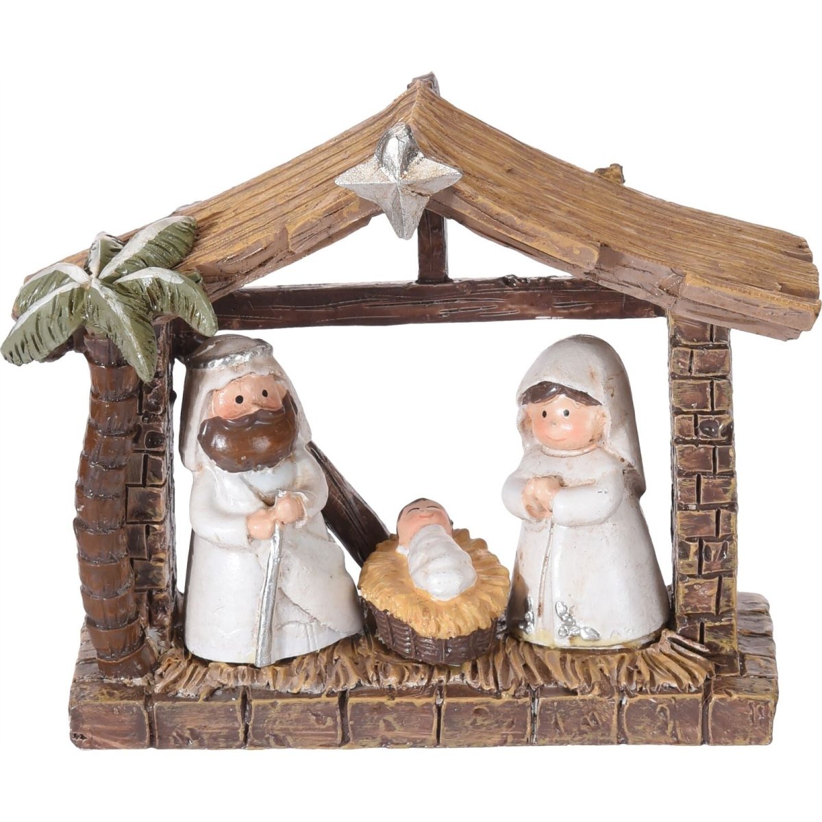 NATIVITY SET | Perfectly sized for a shelf, mantelpiece, windowsill, or side table. The set measures 8.5cm in height, 10 cm in width, and 3.5 cm in depth, crafted from durable polyresin. One Supplied