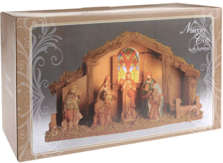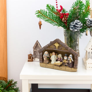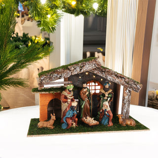LED Traditional Christmas Nativity Set & 8 Detailed Figures Stable Crib Scene