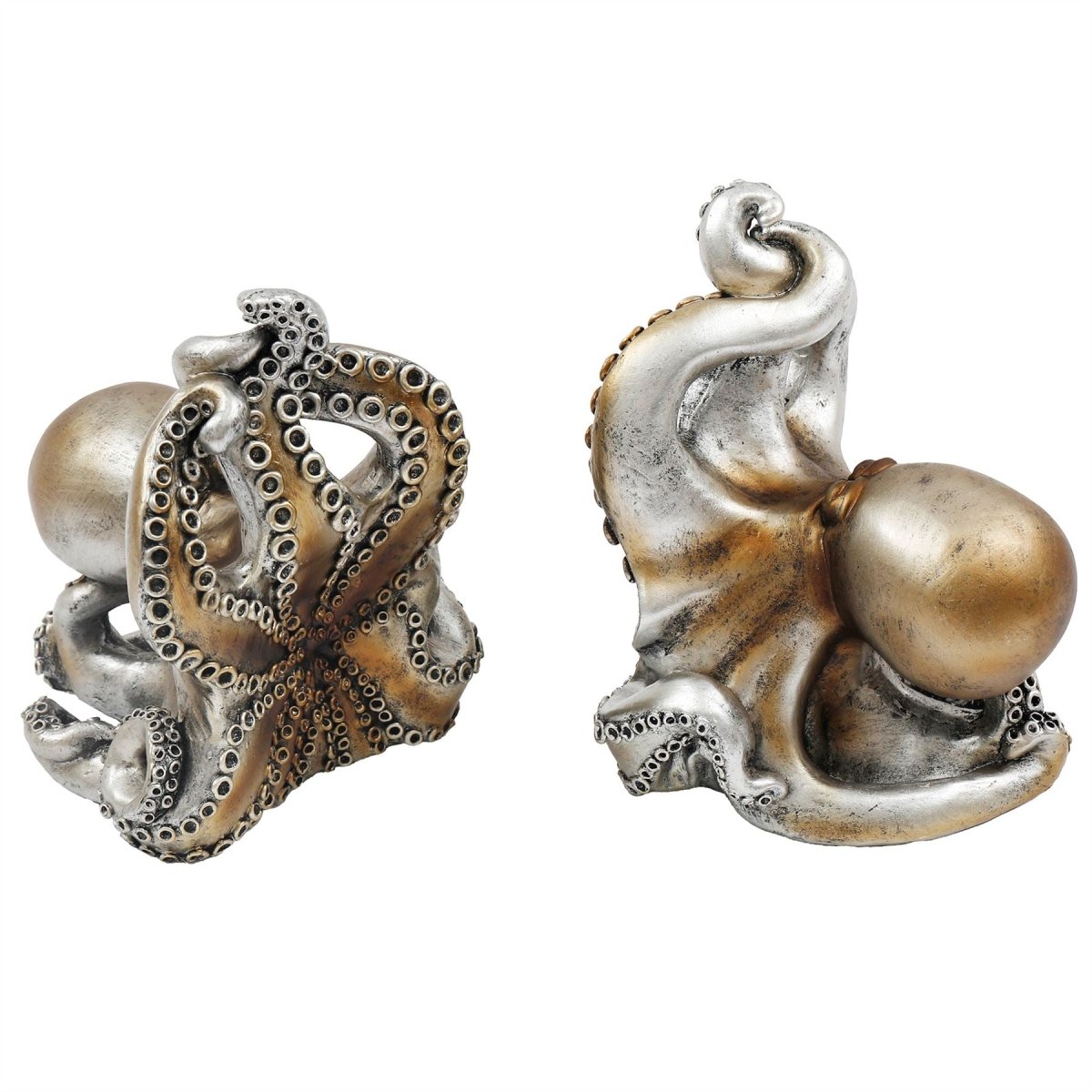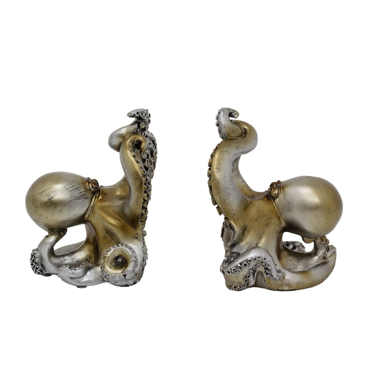 OCTOPUS BOOK ENDS | Detailed polyresin octopus book ends with antique silver finish, adding character and coastal charm to bookshelves and home decor
