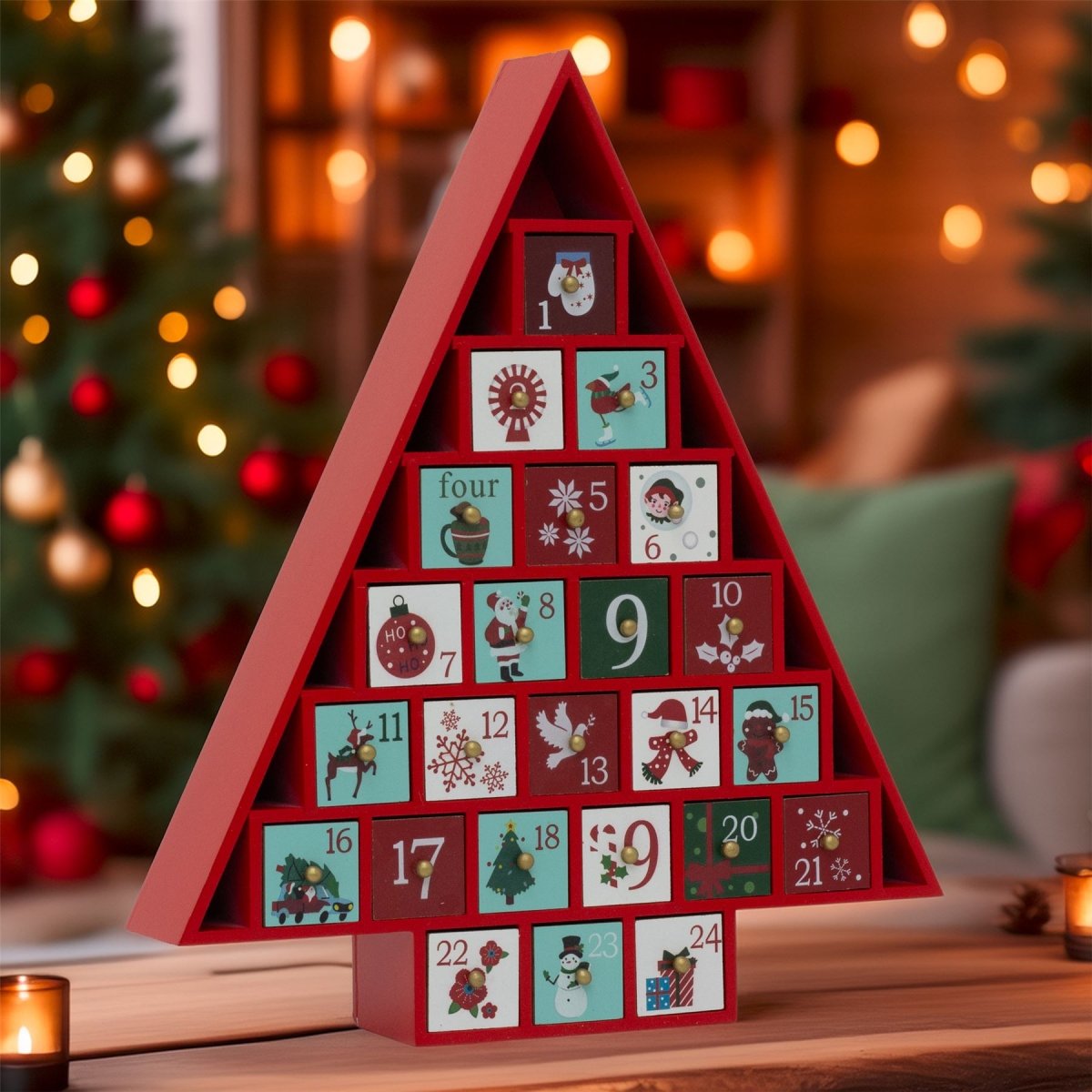 Red Wooden Christmas Tree Advent Calendar | Fill Your Own Advent Calendar