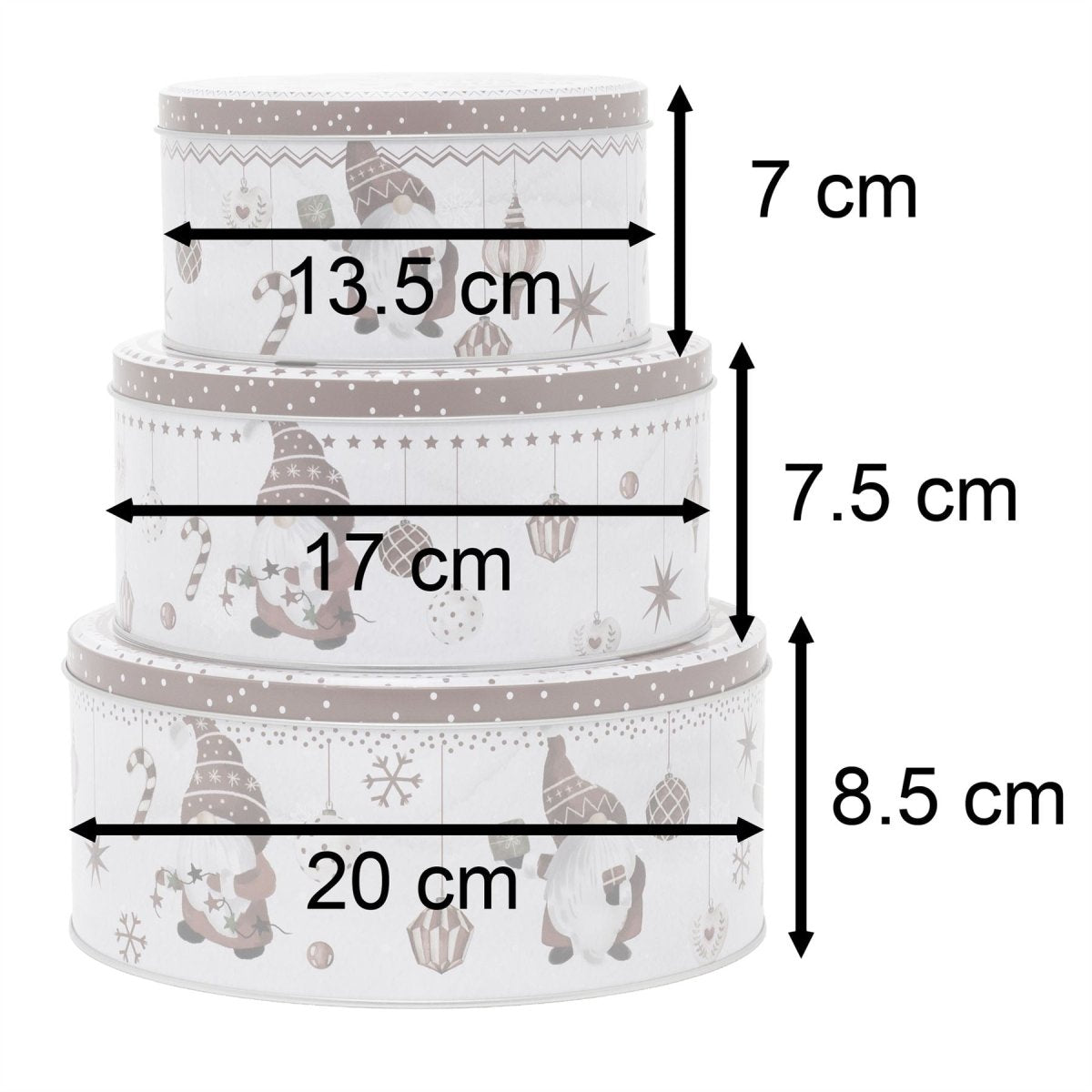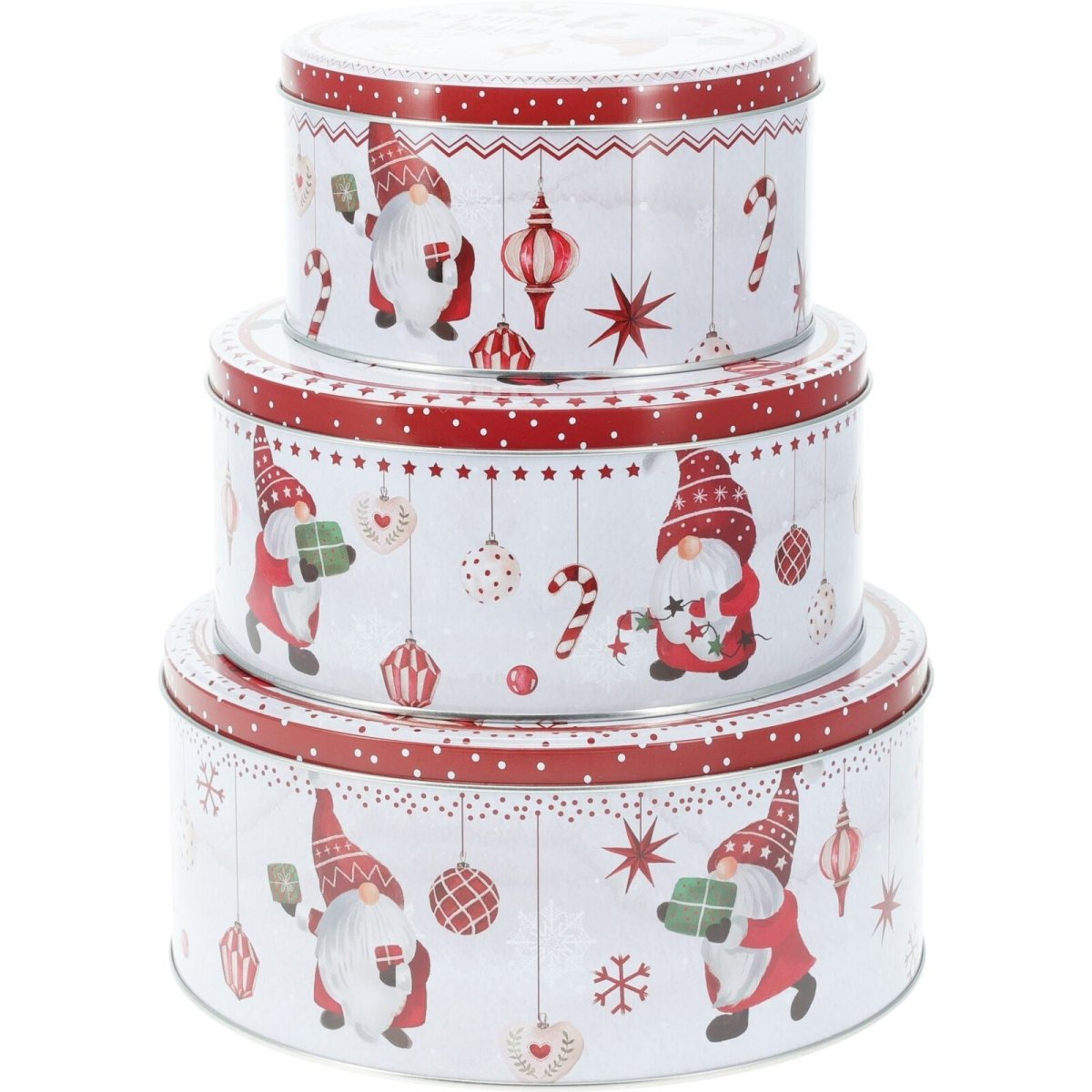 Set of 3 Christmas Gonk Storage Tins | 3-piece Gnome Round Kitchen Nesting Tins