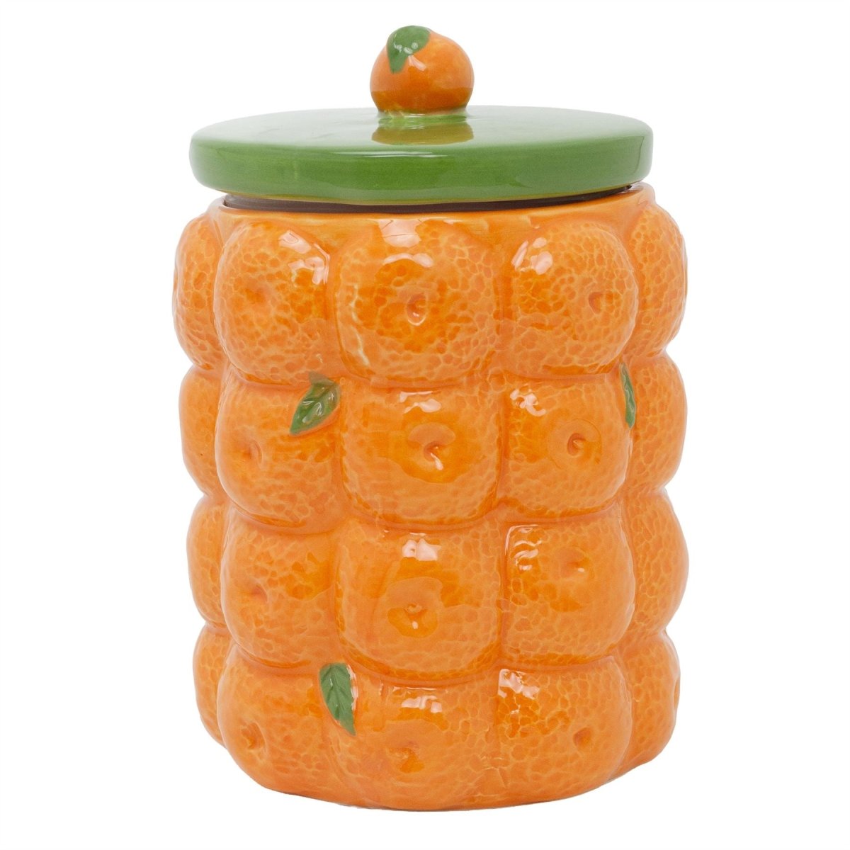 ORANGE CERAMIC JAR | A bright ceramic jar decorated with hand-painted oranges, ideal for storing biscuits, snacks, or pantry essentials