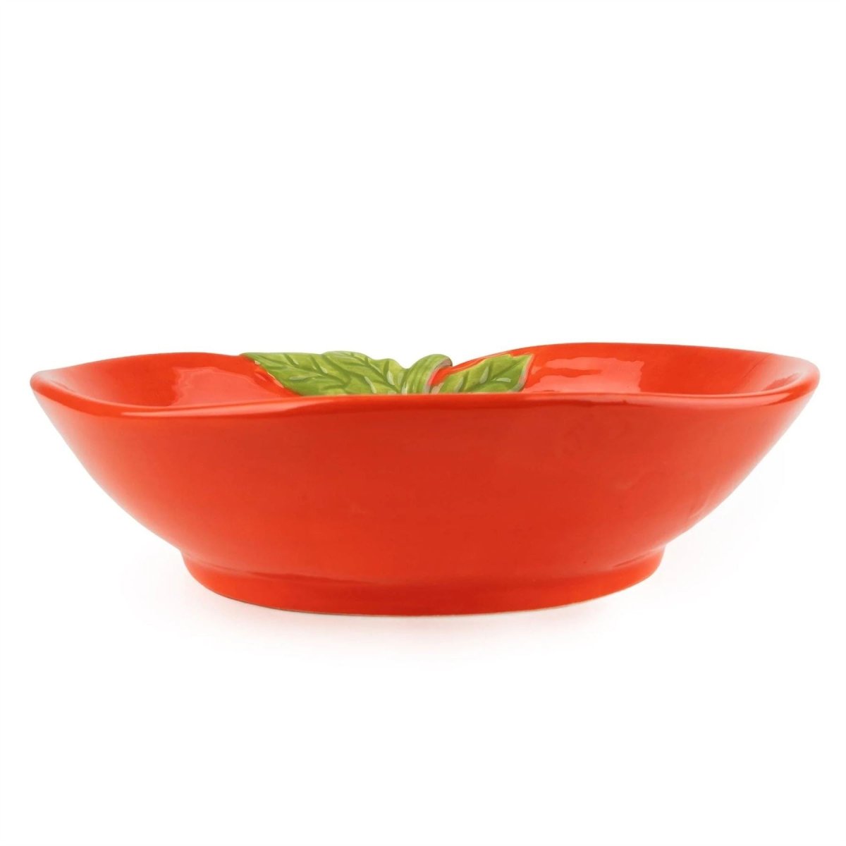 TOMATO SHAPED BOWL | Add instant cheer to the table with this tomato shaped bowl, finished in a bold red glaze with sculpted green leaf detail inspired by Mediterranean produce