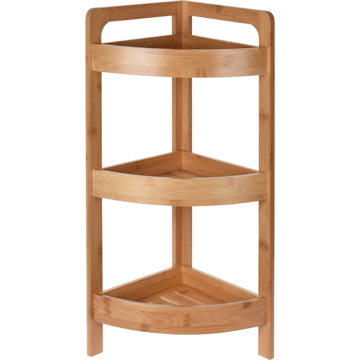 BAMBOO SHELVES | Crafted from high-quality bamboo, this 3-tier corner shelf is not only eco-friendly but also moisture-resistant, making it perfect for bathroom use