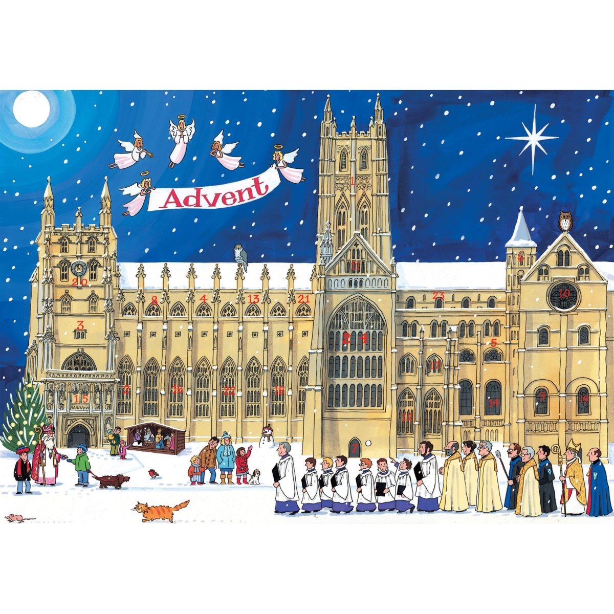 Christmas Eve at the Cathedral, a Christmas procession is on its way, St Nicholas hands out coins to excited children and a small nativity scene delights the passers-by. This beautifully illustrated advent calendar has lovely detailed pictures behind the doors - one is a stained glass window based on a real window at Canterbury Cathedral. Beautiful images to be revealed during the Christmas countdown.
