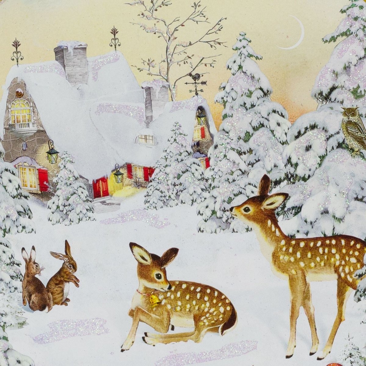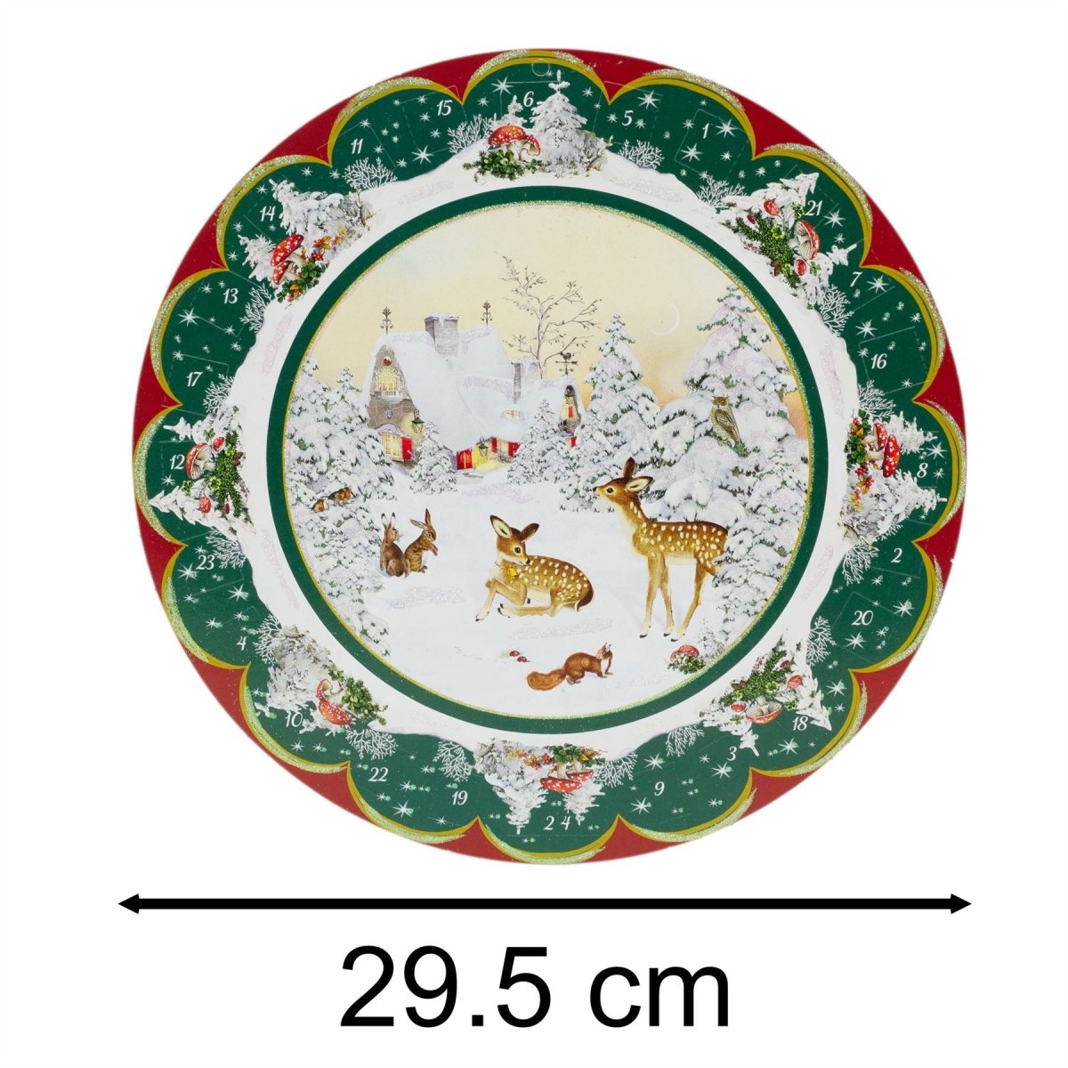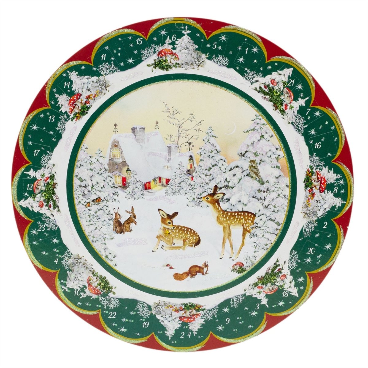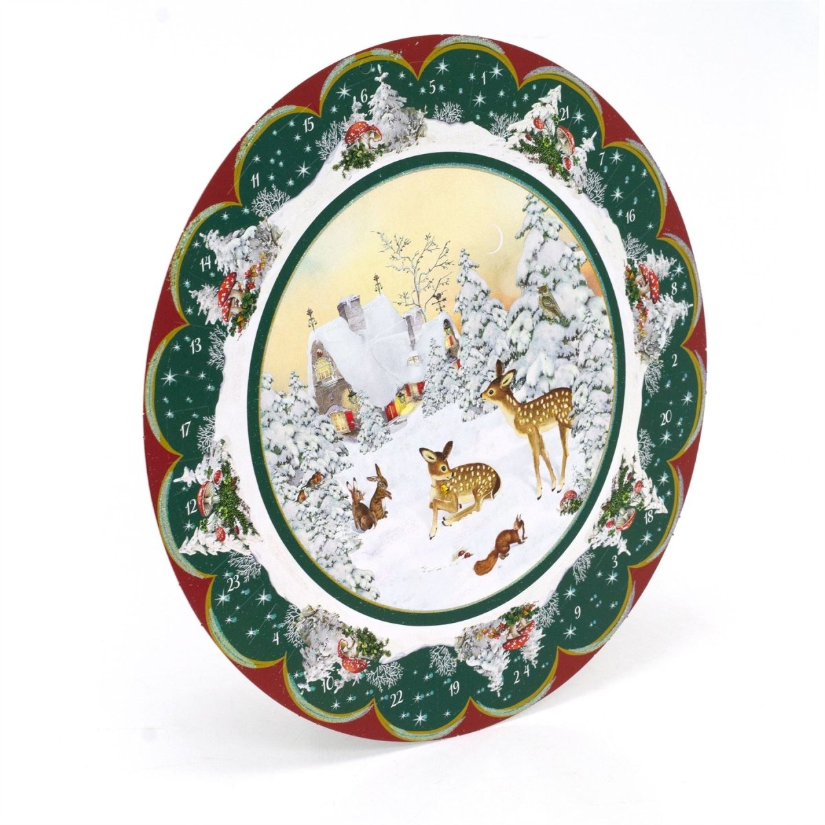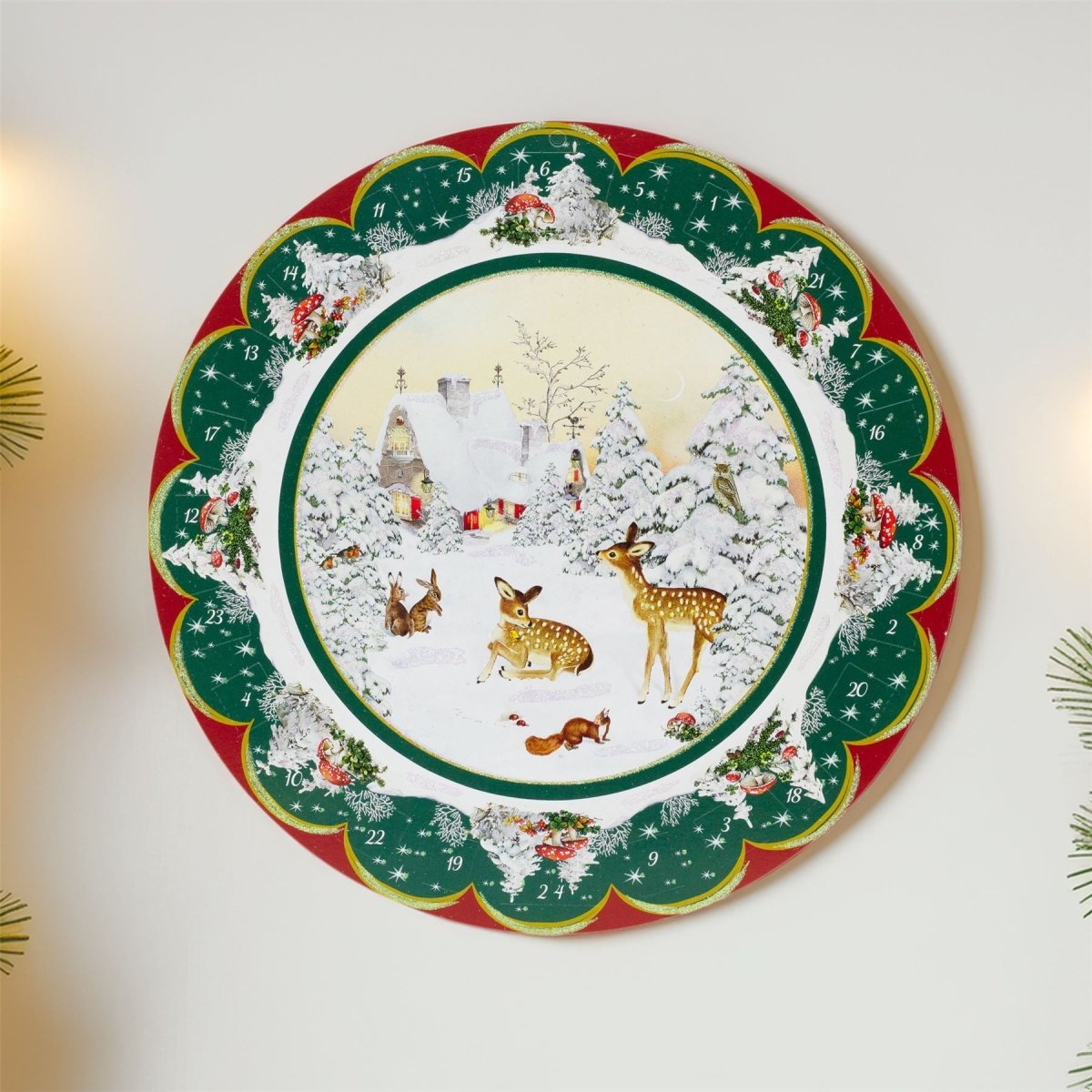 HEARTWARMING FOREST SCENE | This circular advent calendar features a sweet baby fawn discovering its first Christmas in a snowy woodland full of friendly animals