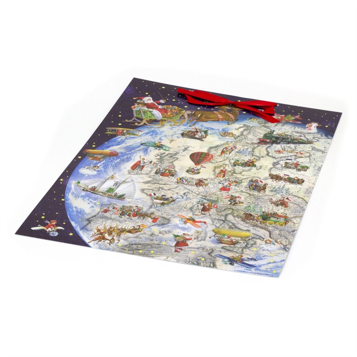 SANTA’S EUROPEAN ADVENT JOURNEY | A large advent calendar featuring Santa travelling across Europe, discovering festive customs and joyful traditions