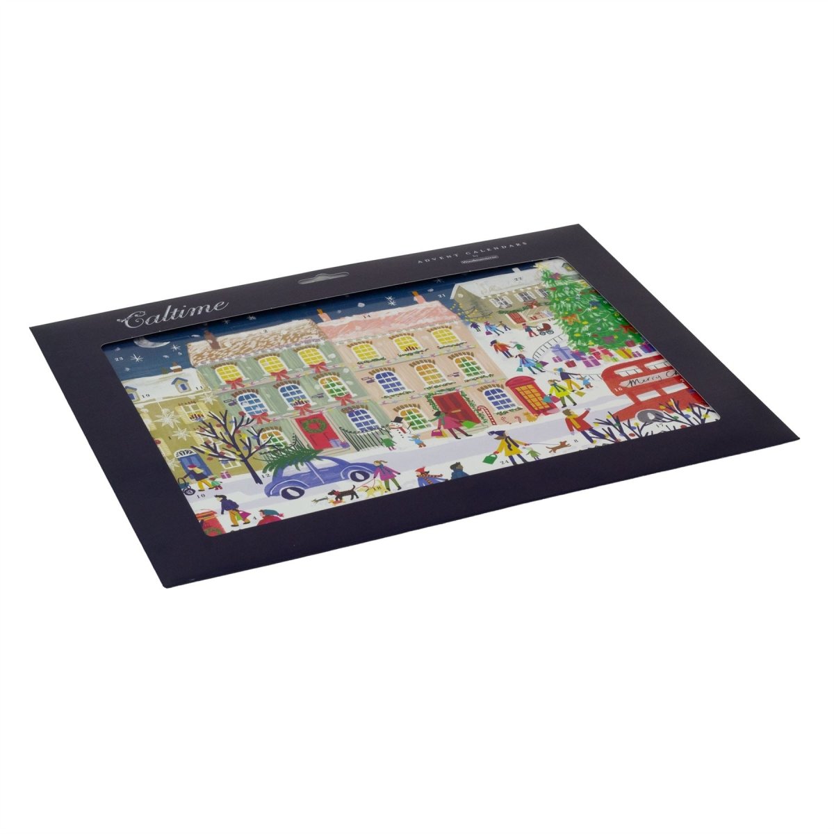 Countdown to Christmas with this Joys of the Season advent calendar, featuring a snowy village, festive families, and 24 doors revealing charming illustrations