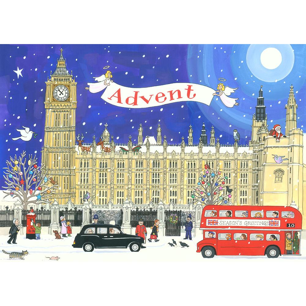 A traditional, chocolate-free advent calendar with 24 windows that open to reveal a beautiful, Christmassy illustration designed by Alison Gardiner.
