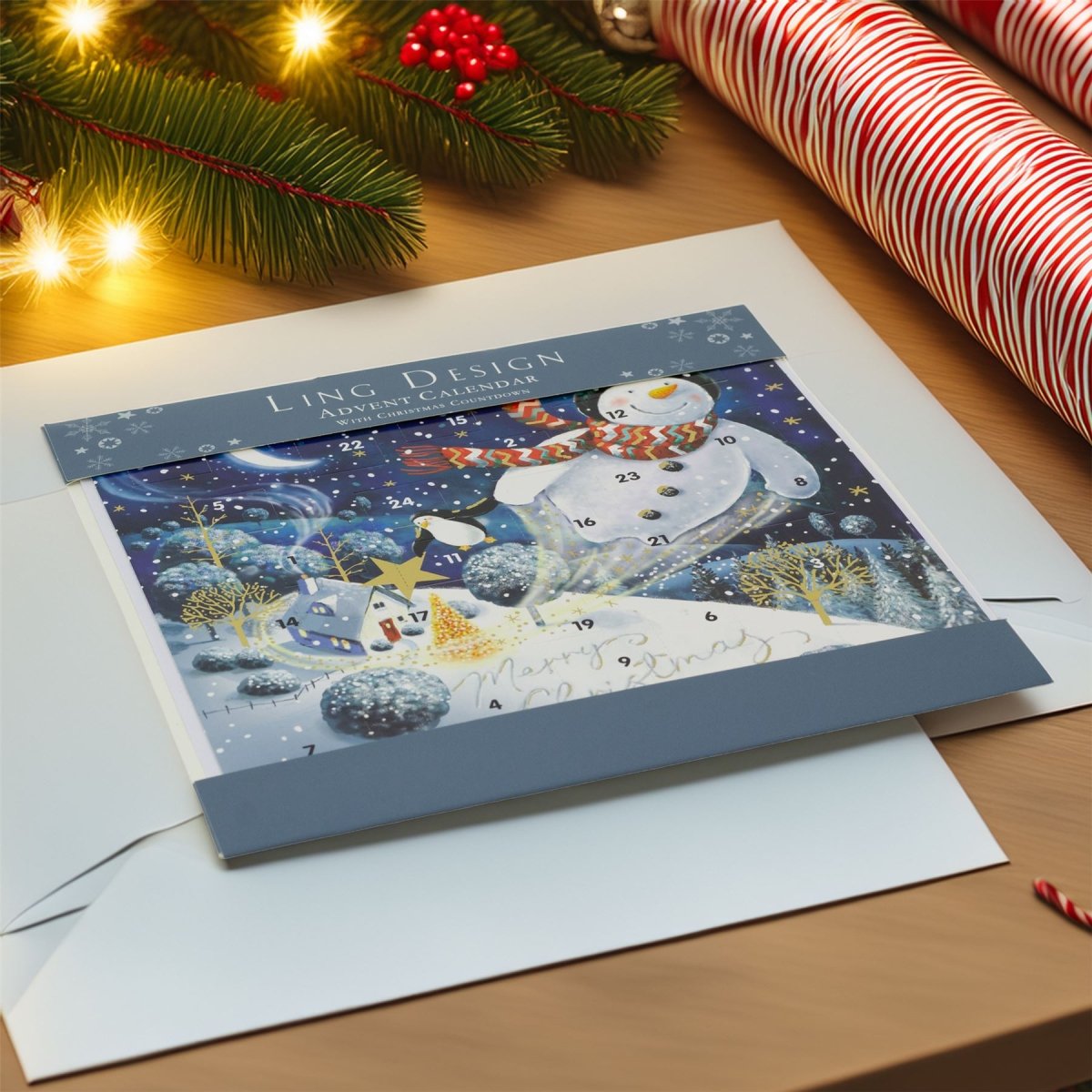 Celebrate Christmas with this Snowman advent calendar, featuring 24 doors, a cosy winter village scene, and daily festive surprises