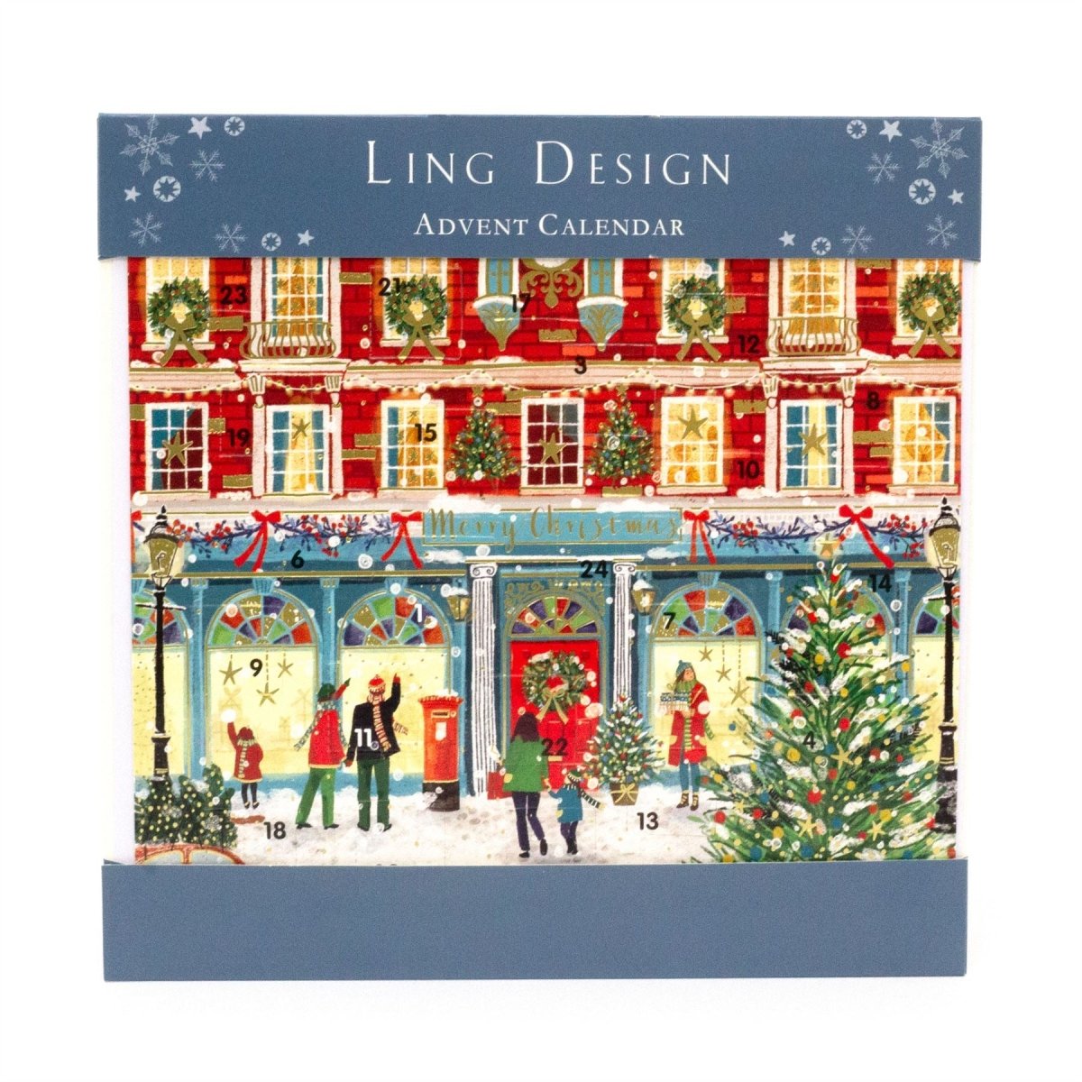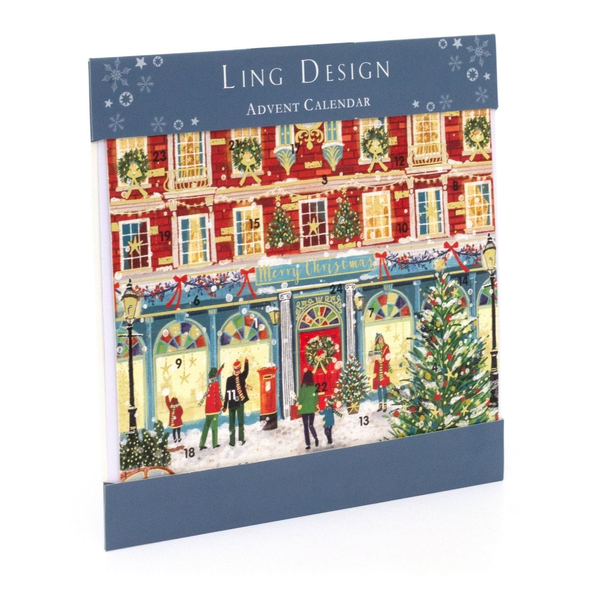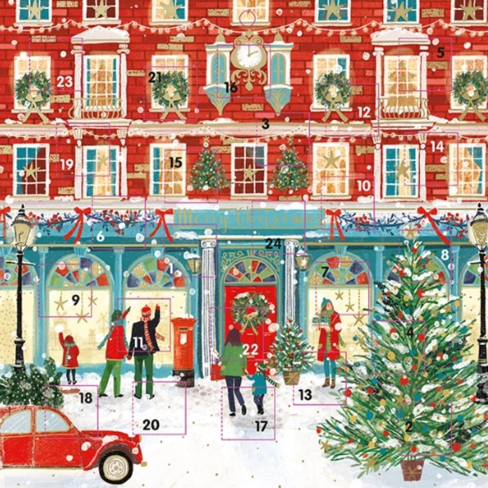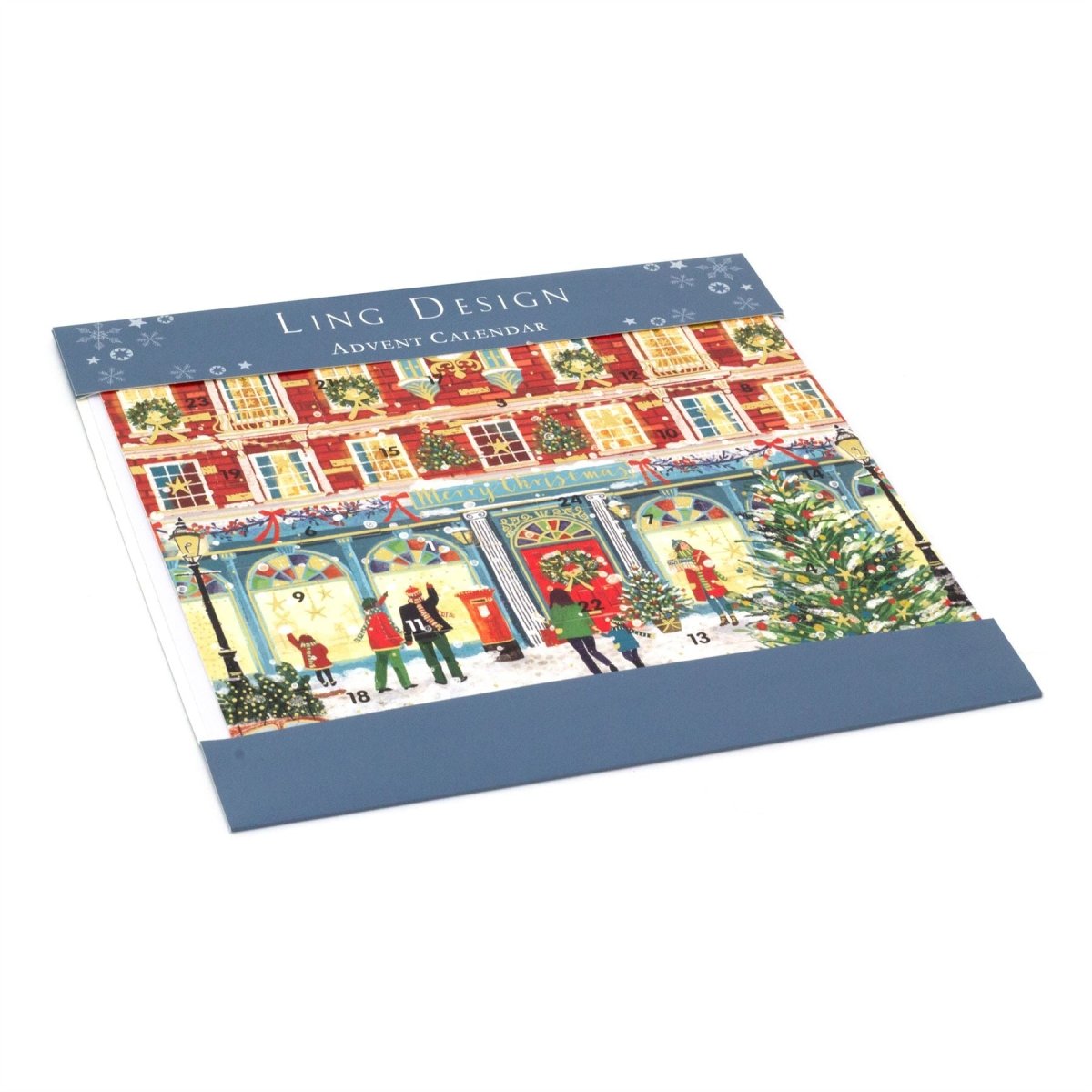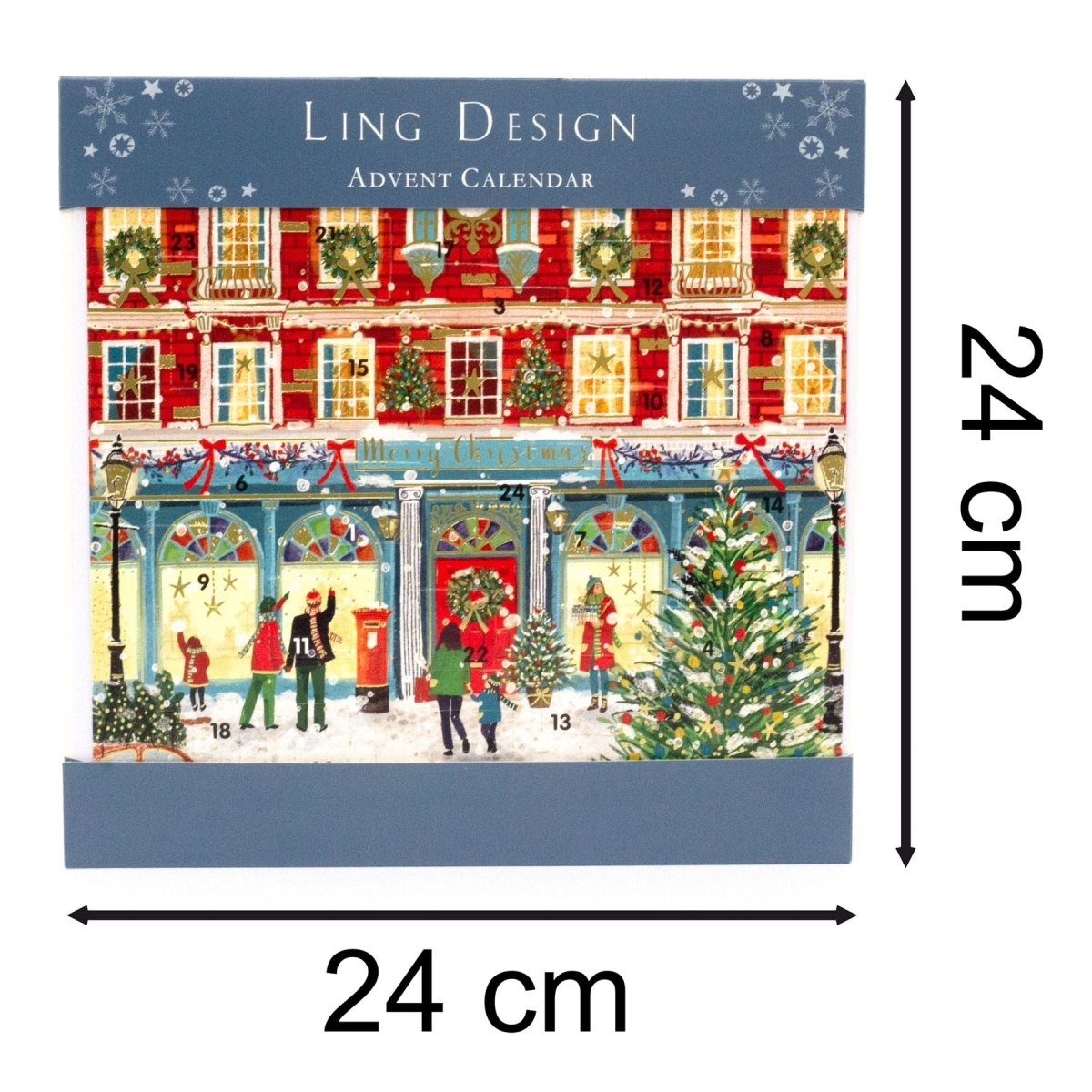Capture the spirit of the season with our charming Advent Calendar, featuring snowy trees and joyful shoppers. Each detail brings Christmas cheer, making it a delightful addition to your holiday decor. Each day reveals a new surprise, adding excitement as you count down to the big day. With elegant gold accents and a greetings card format, it’s a wonderful way to send festive wishes to loved ones, while its 23cm size makes it a charming display piece for any home. Whether nestled on a mantelpiece, shelf, or wall, this Advent Calendar is a joyful reminder of the magic and warmth of Christmas, ready to be shared with family and friends