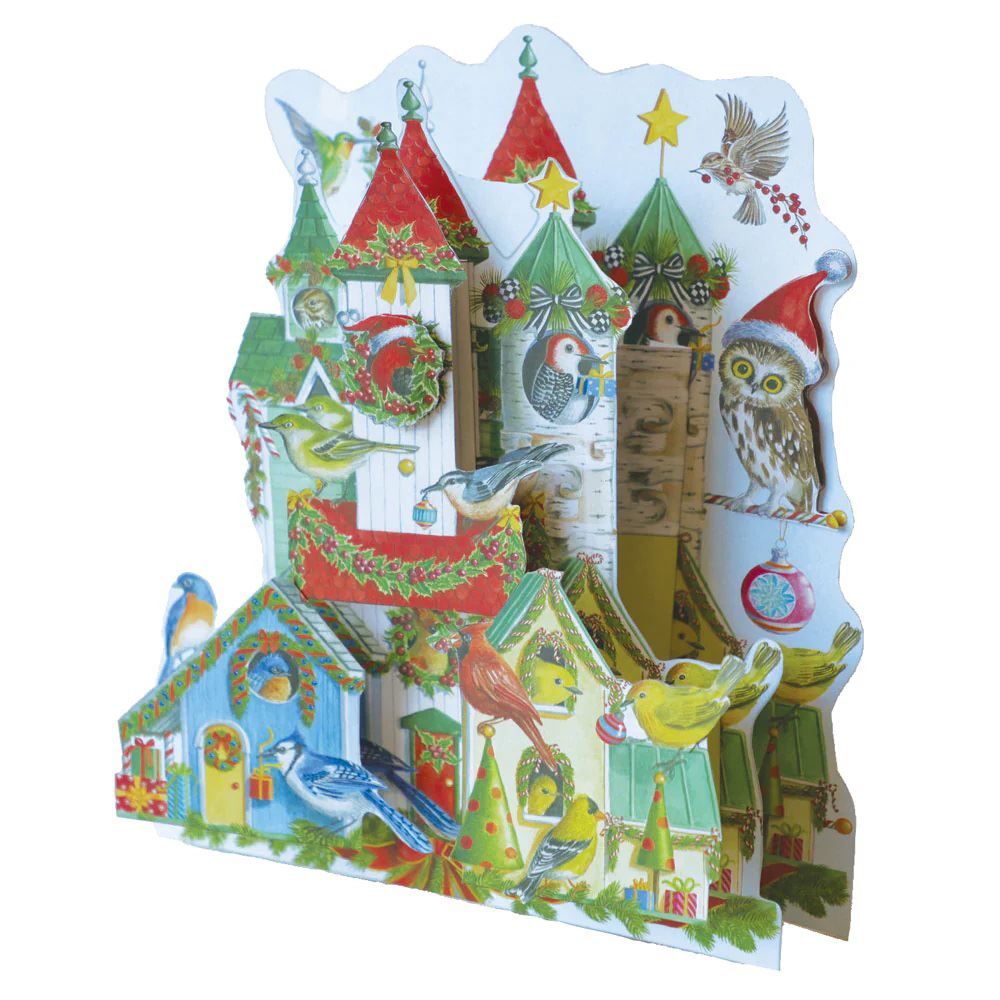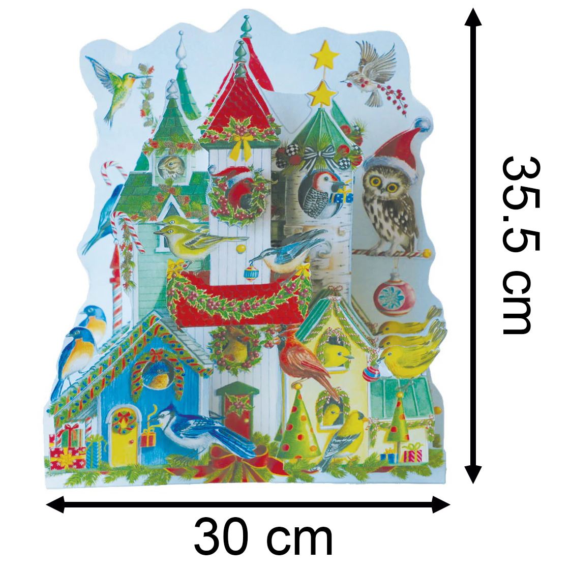 CHRISTMAS ADVENT CALENDAR | Celebrate the festive season with the Pop-up 3D Birdhouse Christmas Advent Calendar. This delightful freestanding calendar unfolds into a charming birdhouse, featuring whimsical illustrations of birds carrying candy canes and ornaments
