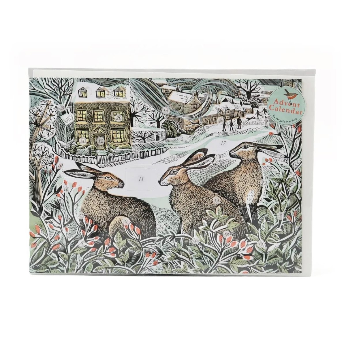 Celebrate the season with this We Three Hares advent calendar card. Lift 24 doors to reveal festive surprises and share a heartwarming message with friends or family