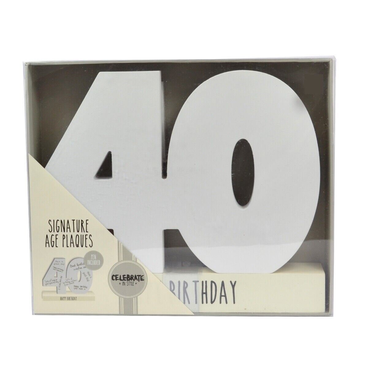Celebrate this milestone birthday with this unique and personalised white wooden plaque featuring the number "40" and space for signatures from friends and family