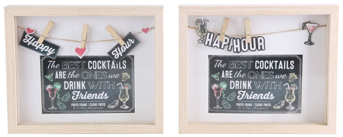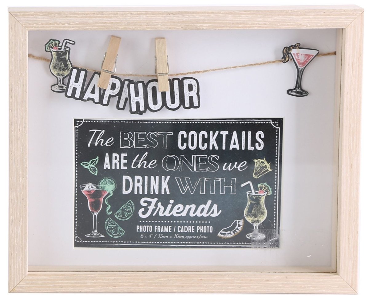 Are you the life and the soul of a party? Do you know someone who is? A black wooden box style photo frame with a definite party vibe! It's a fabulous frame as it is, with a lovely quote about friends in the aperture. We're sure it would look even better though with a photo of you and your pals having a good time! It features some great details with the clothes line pegs holding a Happy Hour sign. Ideal for all those who love a shindig every now and again! Please note the actual happy hour sign design varies slightly at the top of the frame. One frame will be chosen at random.