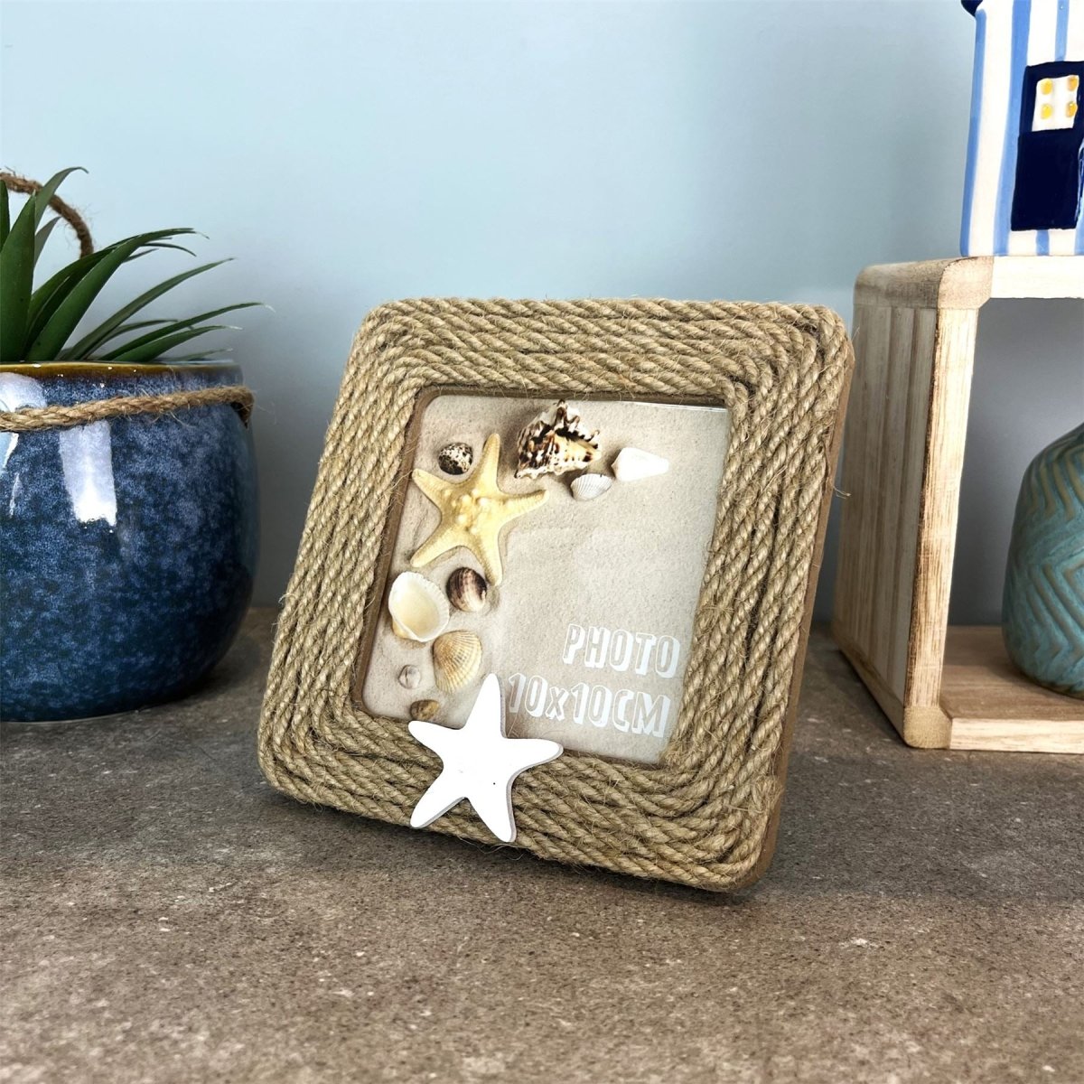 PERFECT FOR MEMORIES | Capture holiday memories or cherished moments with family and friends. Whether displaying portraits of loved ones or adorable pet pictures, this jute photo frame ensures your memories are showcased with pride and style, adding a touch of coastal charm to your home