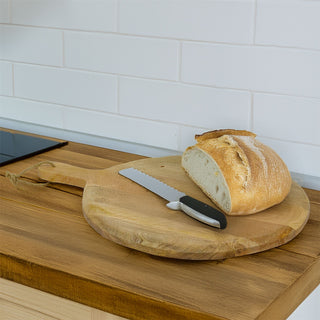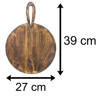 Round Mango Wood Chopping Board with Handle | Rustic Serving Platter - 40x30cm