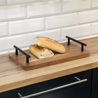 Acacia Wood Serving Tray with Handles | Rectangle Wooden Serving Platter - 30cm
