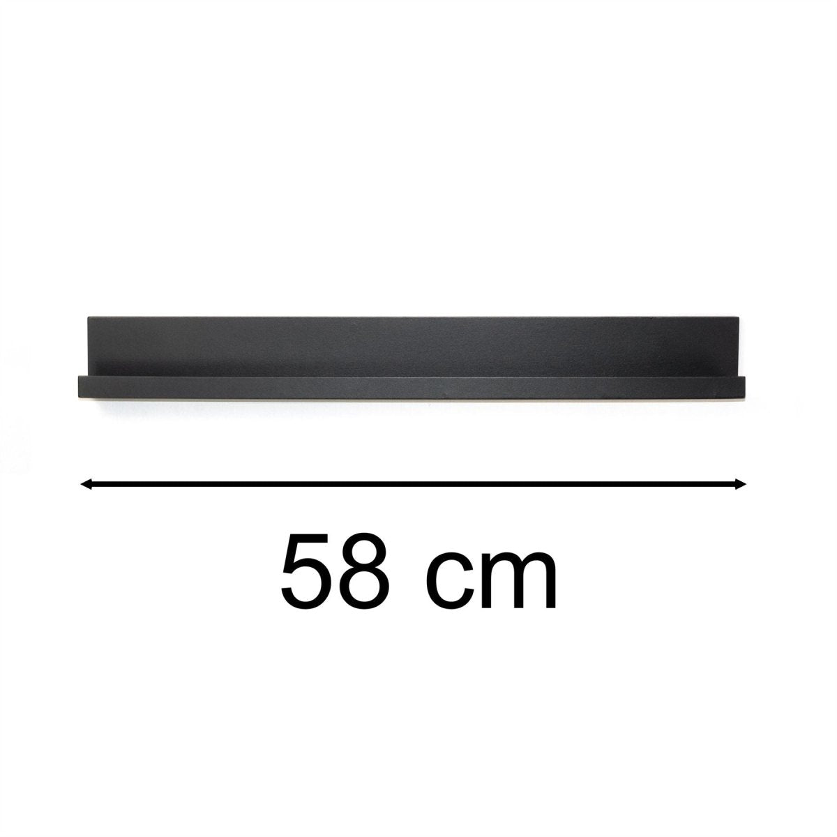 DIMENSIONS | This 58cm-long floating shelf is designed to be strong and slender, providing ample space without being bulky. Its sturdy yet lightweight construction ensures that your belongings are held securely while it maintains a low profile on the wall