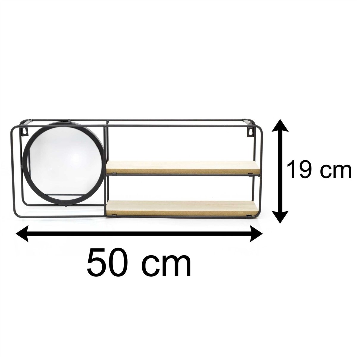 STORAGE UNIT: Simply yet eye-catching design, easy to hang. Please note wall mounting fixings are not supplied. Product dimension 18cm mirror 50 x 19 x 10cm shelf unit