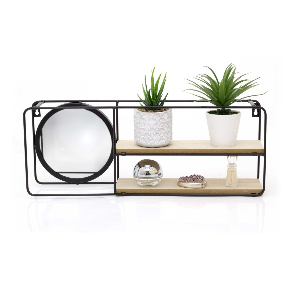 Black Industrial Style 2 Tier Wooden Shelves With Mirror | Double Shelf Rack Display Rack Organiser | Rectangle Shelf Storage Unit