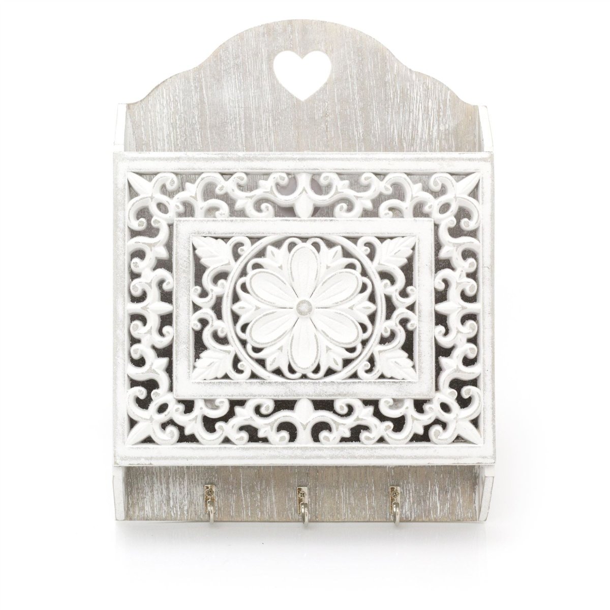 Shabby Chic Whitewashed Carved Key Holder For Wall | Wooden Letter Rack Letter Holder Key Rack | Rustic Wall Mounted Key Hanger Wall Mounted Key Hooks