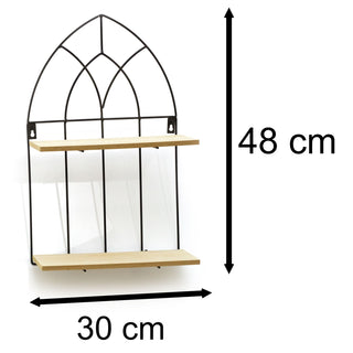 Rectangle Wall Double Shelf Unit With Hooks | 2 Tier Wooden Black Metal Floating Shelves | Kitchen Spice Rack