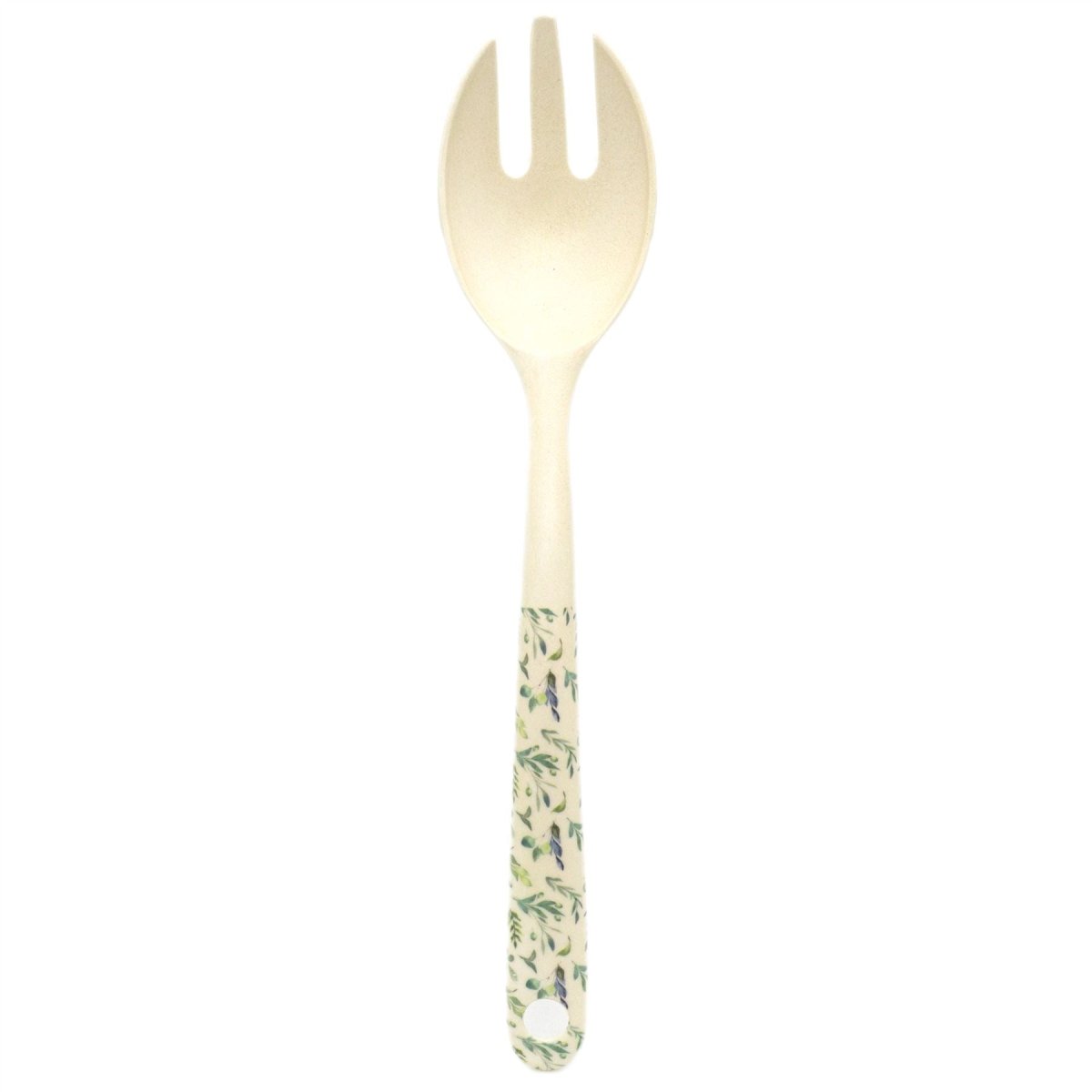 Set Of 2 Olive Grove Bamboo Salad Servers | Eco Friendly Salad Fork Salad Spoon | Kitchen Serving Utensils