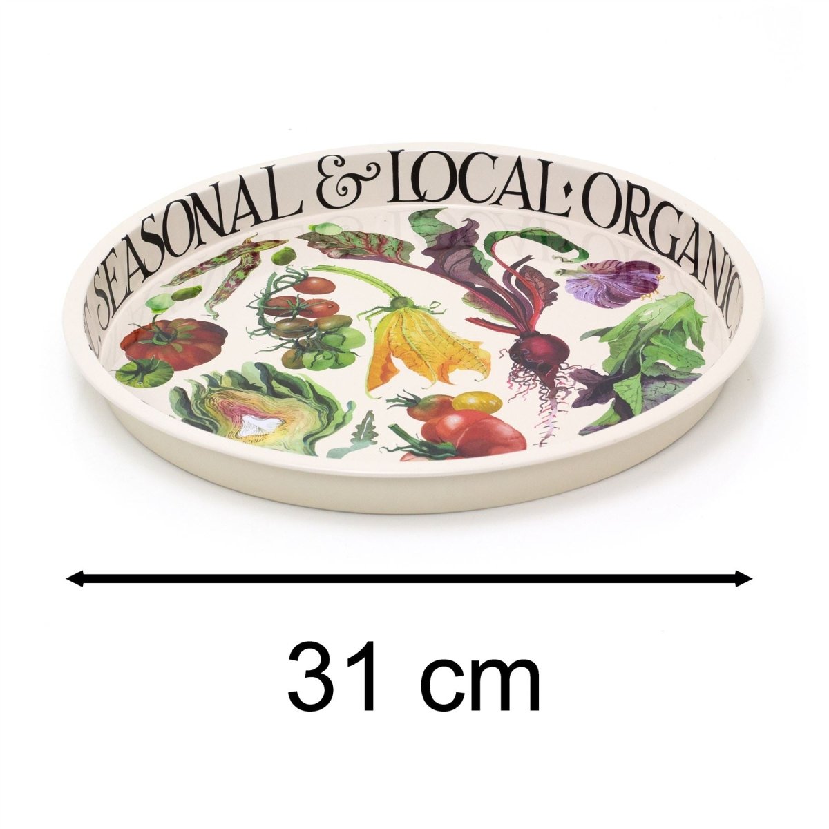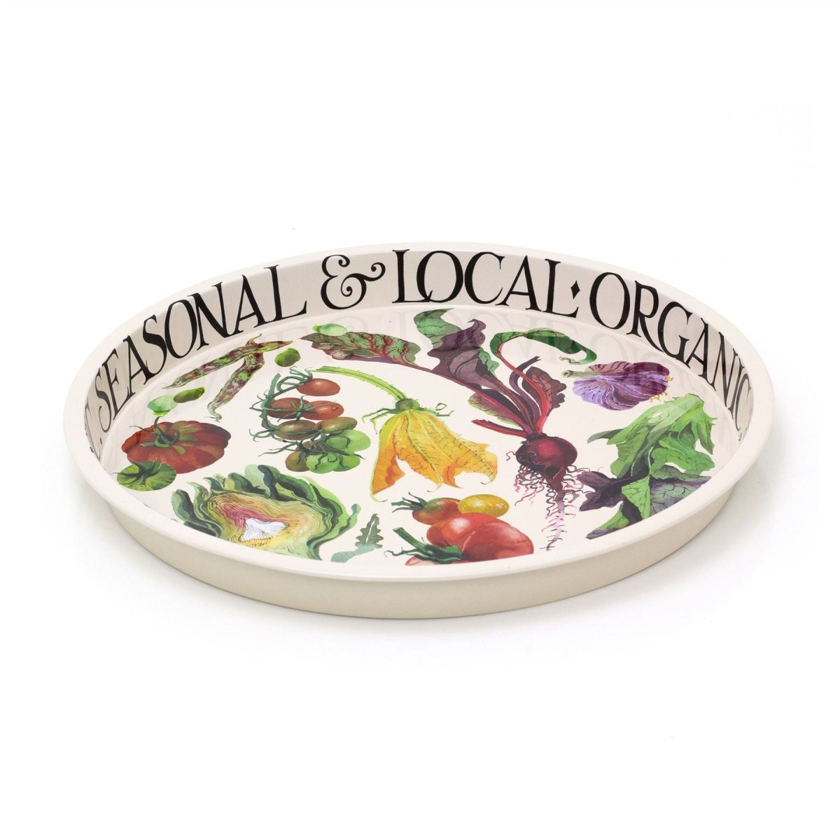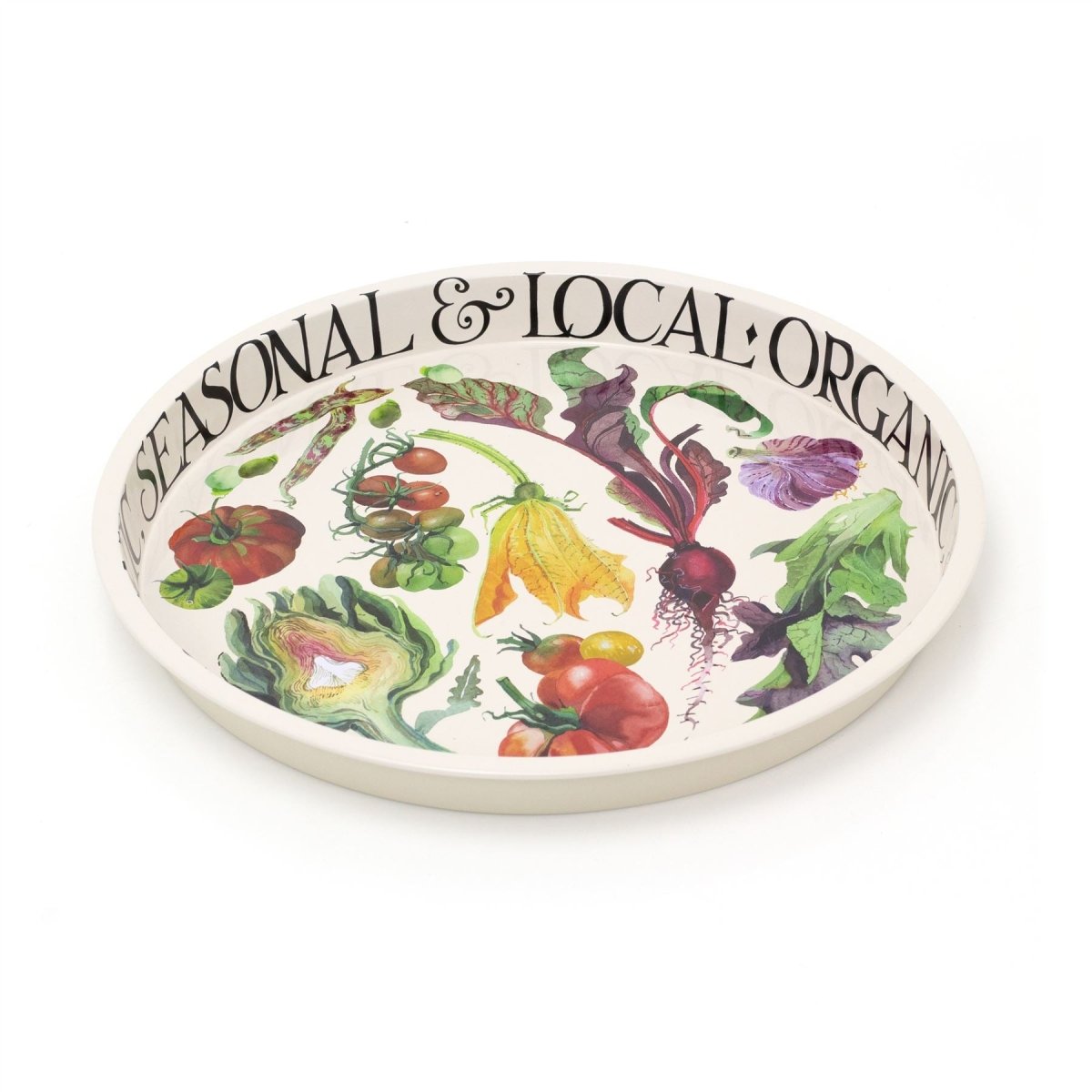 LARGE DRINKS TRAY | A handy round tray from Emma Bridgewater. The dig the garden tray is beautifully illustrated with colourful images of a variety of garden vegetables