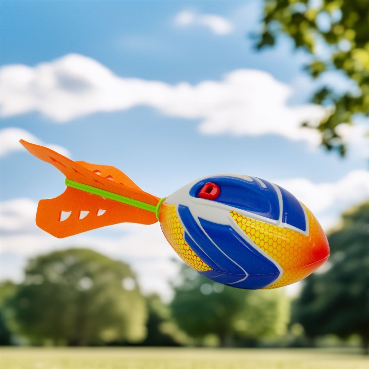 A foam whistle rocket throwing toy that howls through the air, perfect for outdoor games in the garden, park or at the beach
