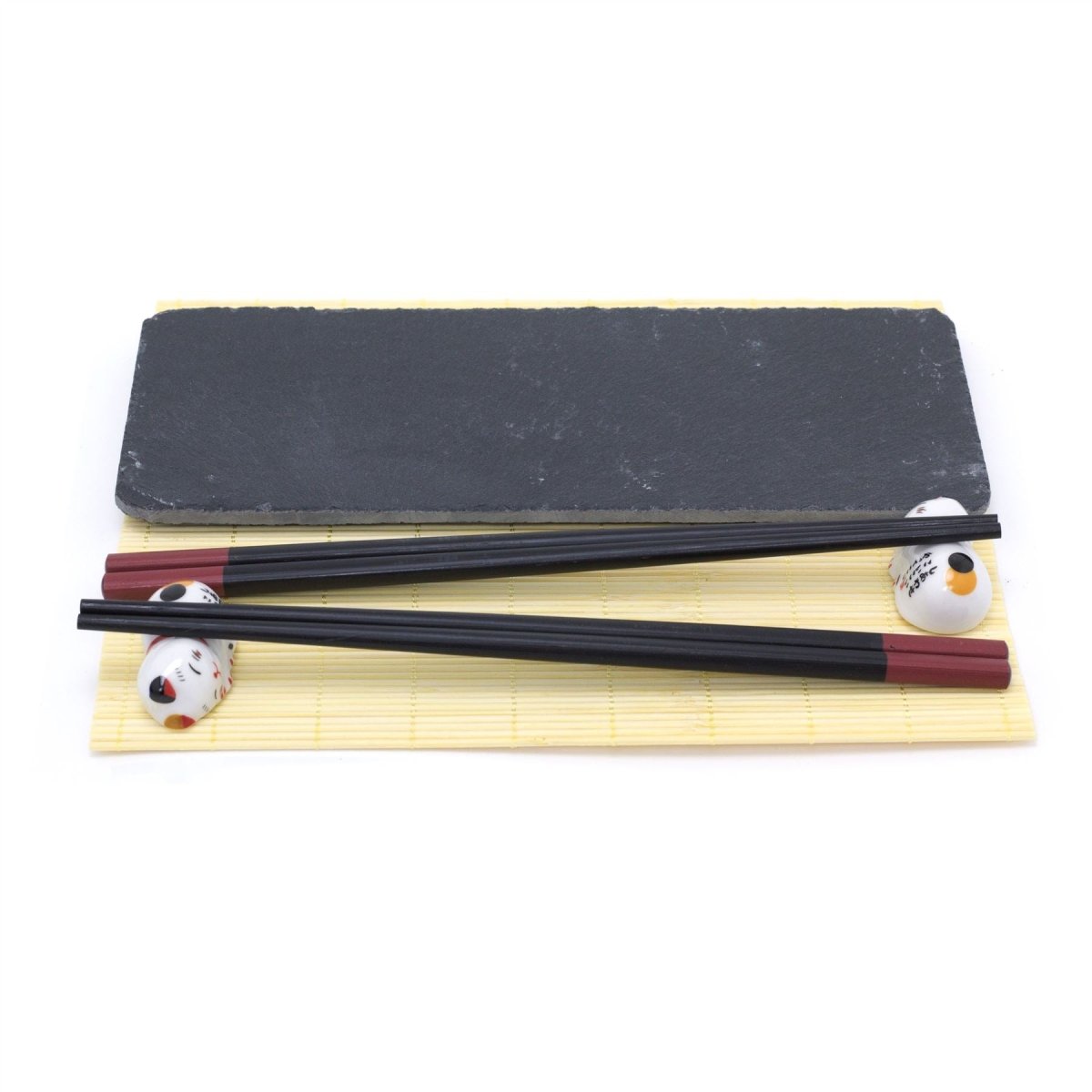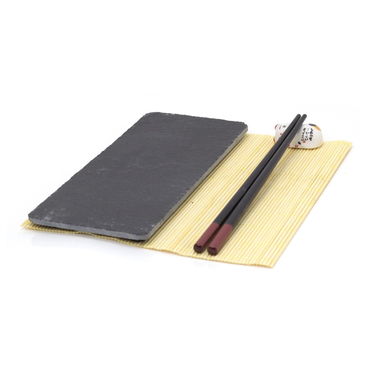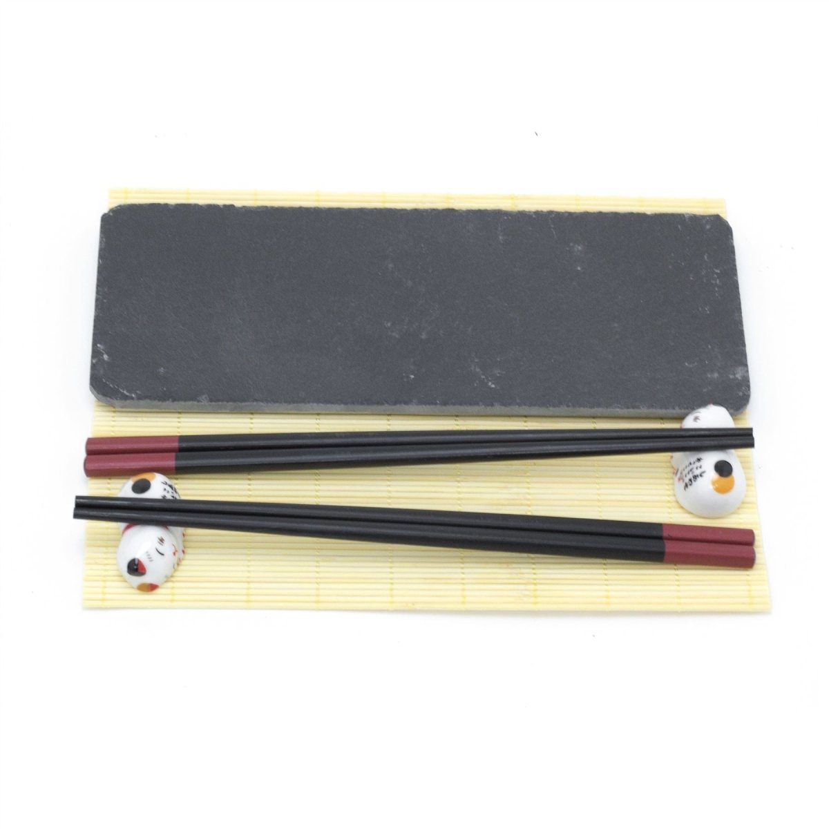 SERVING PLATTER FOR SUSHI: Each set includes 1 x slate serving board 2 x chopsticks 2 x chopstick rests 1 x mat