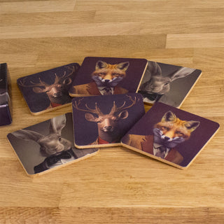 Set Of 2 Winter Woodland Slate Coasters | Rabbit Squirrel Drinks Coaster Set | Animal Square Cup Mug Table Mats