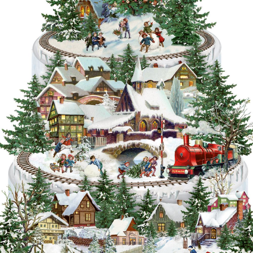 TRADITIONAL ADVENT CALENDAR | This beautiful Advent calendar invites you on a train journey through a spectacular alpine village scene. A classic card design, featuring beautiful glittery detail throughout which really brings the Advent calendar to life