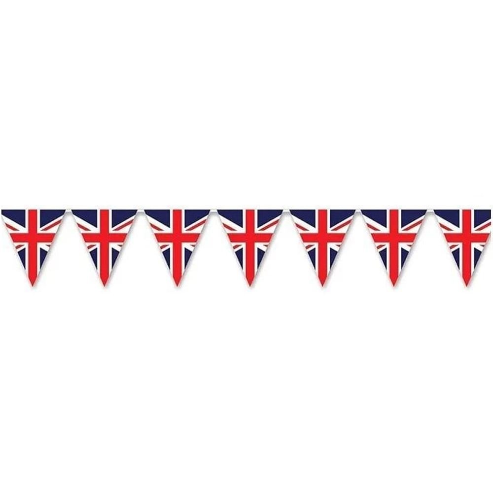 BRITISH FLAG BUNTING: Hang along walls, tables, windows, fences and trees to brighten up your party decor