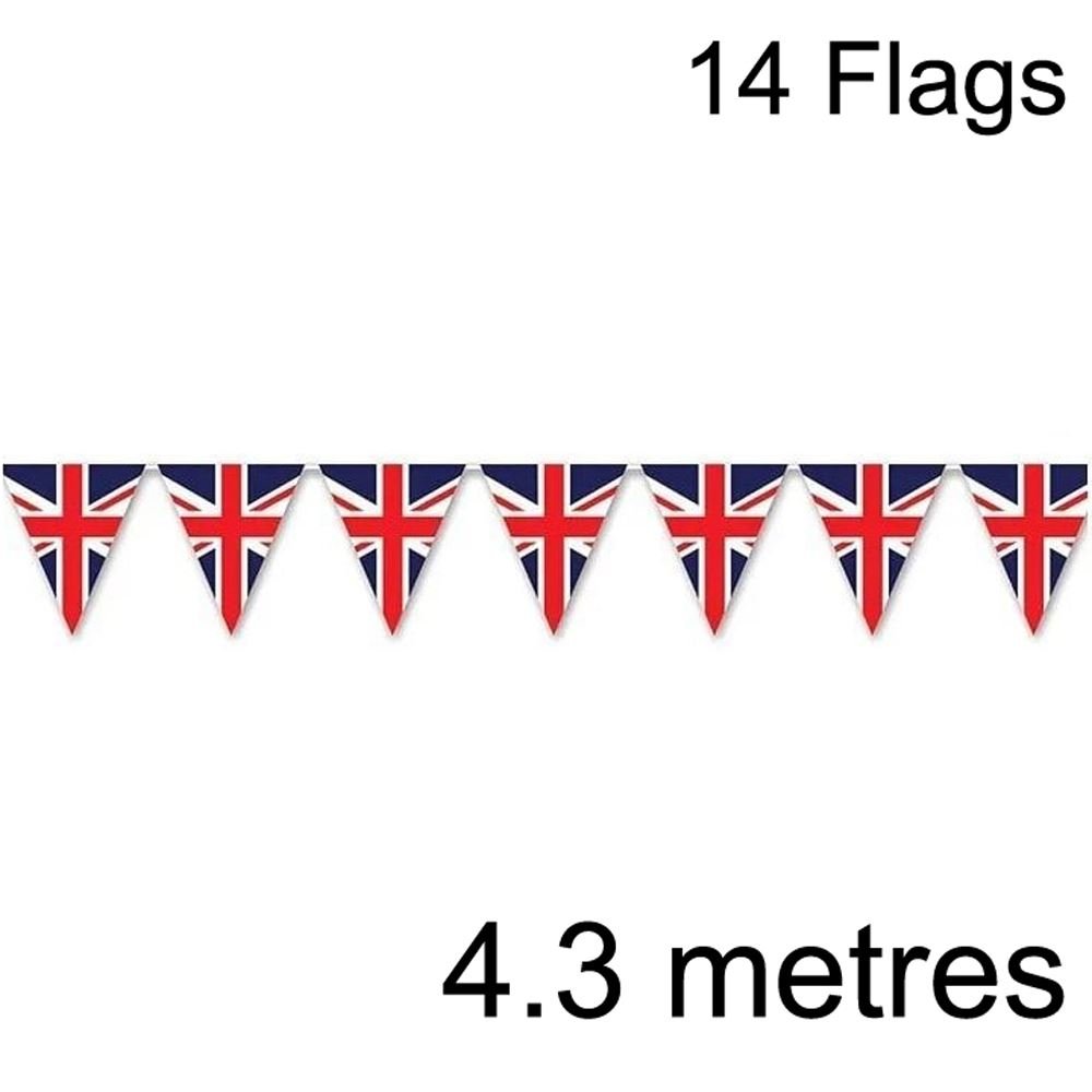 BUNTING FOR QUEENS PLATINUM JUBILEE: Triangle bunting 4.3m with 14 flags - Double sided print with bright red, white and blue