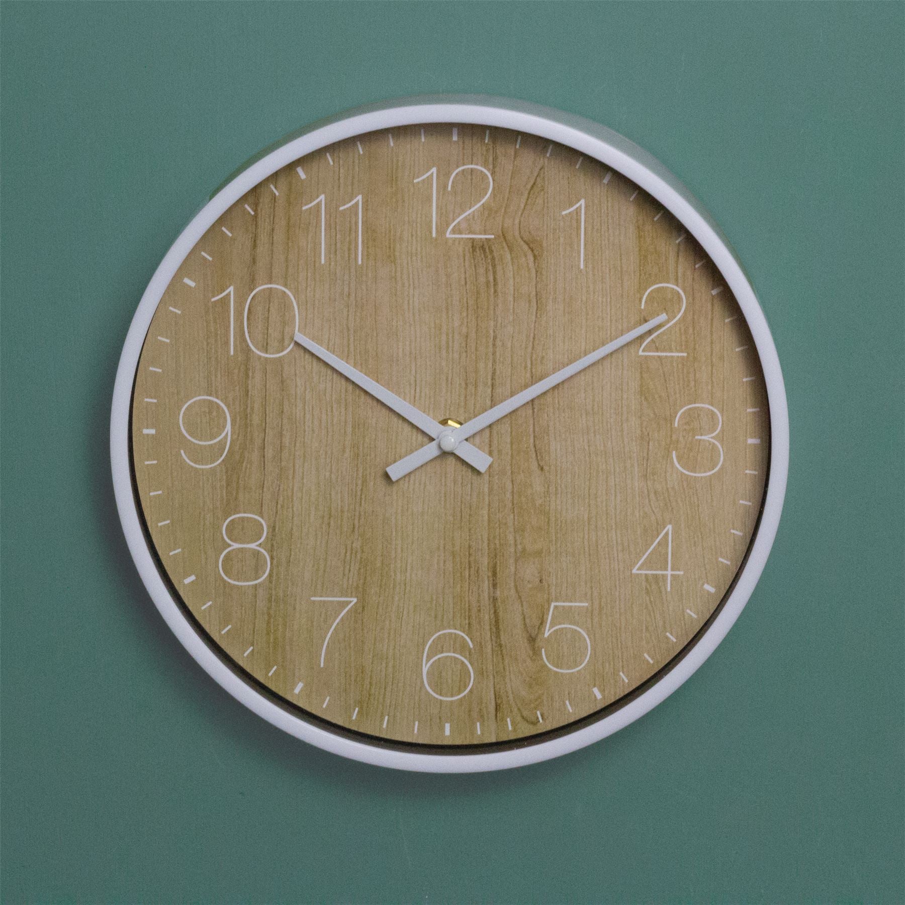 VERSATILE STYLE | Perfect for a variety of interiors, from modern to rustic. The wood motif dial coupled with the clean white frame makes this clock a versatile choice that complements any room’s style and colour scheme